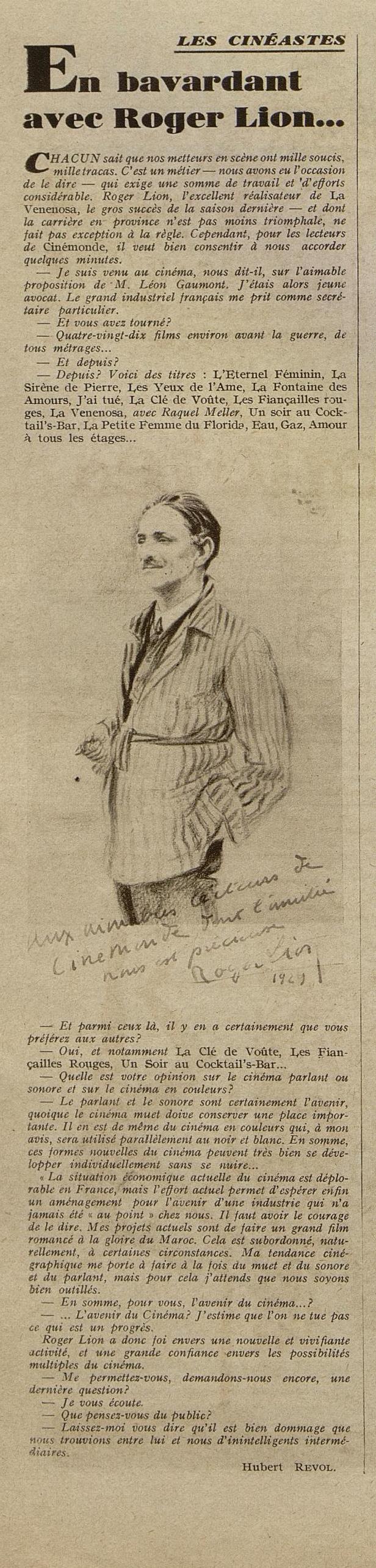 no ano anterior (1923), a «Ciné-Miroir» (sem (ficha técnica, RJ), atribuira a Gi a escolha de Roger Lion