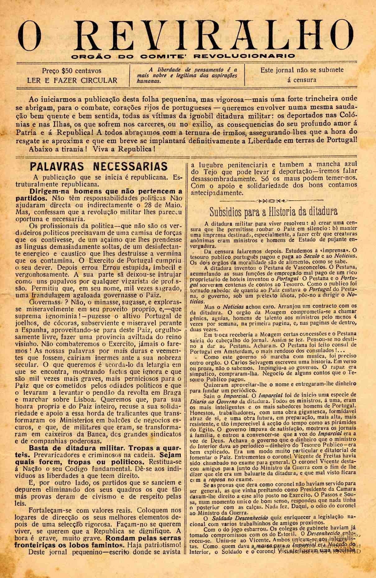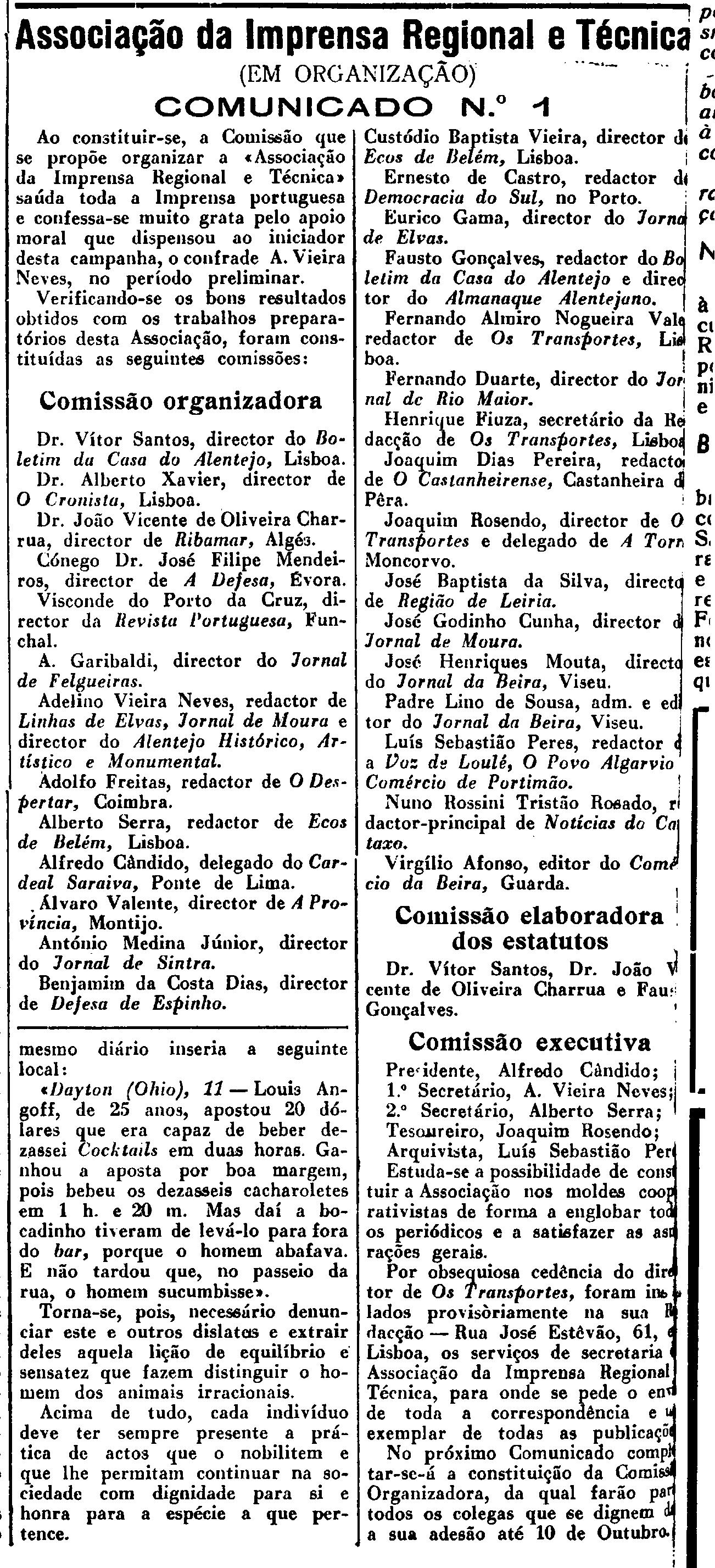 Sede, do editor e da redação, em Lisboa: Av. de Casal Ribeiro, n.º 17 - 3.º Esq. Fte.