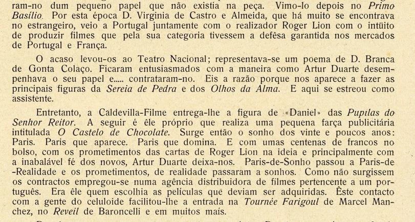 Desgraçadamente, porém, nem todos os que entre nós trabalham cinema, seguem o mesmo ponto de vista e por isso a cinematografia portuguesa não existe, fóra de Portugal.