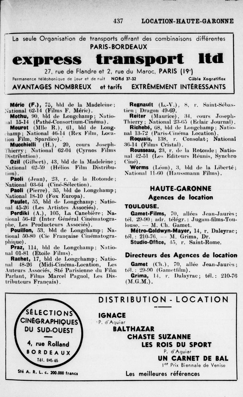 Entre outras razões, ver e dar o meu acordo à montagem de Les Otages (1939), filmagem do importante realizador Raymond Bernard (1891–1977), para a distribuição de tal filme tinha dado garantia relativamente importante.