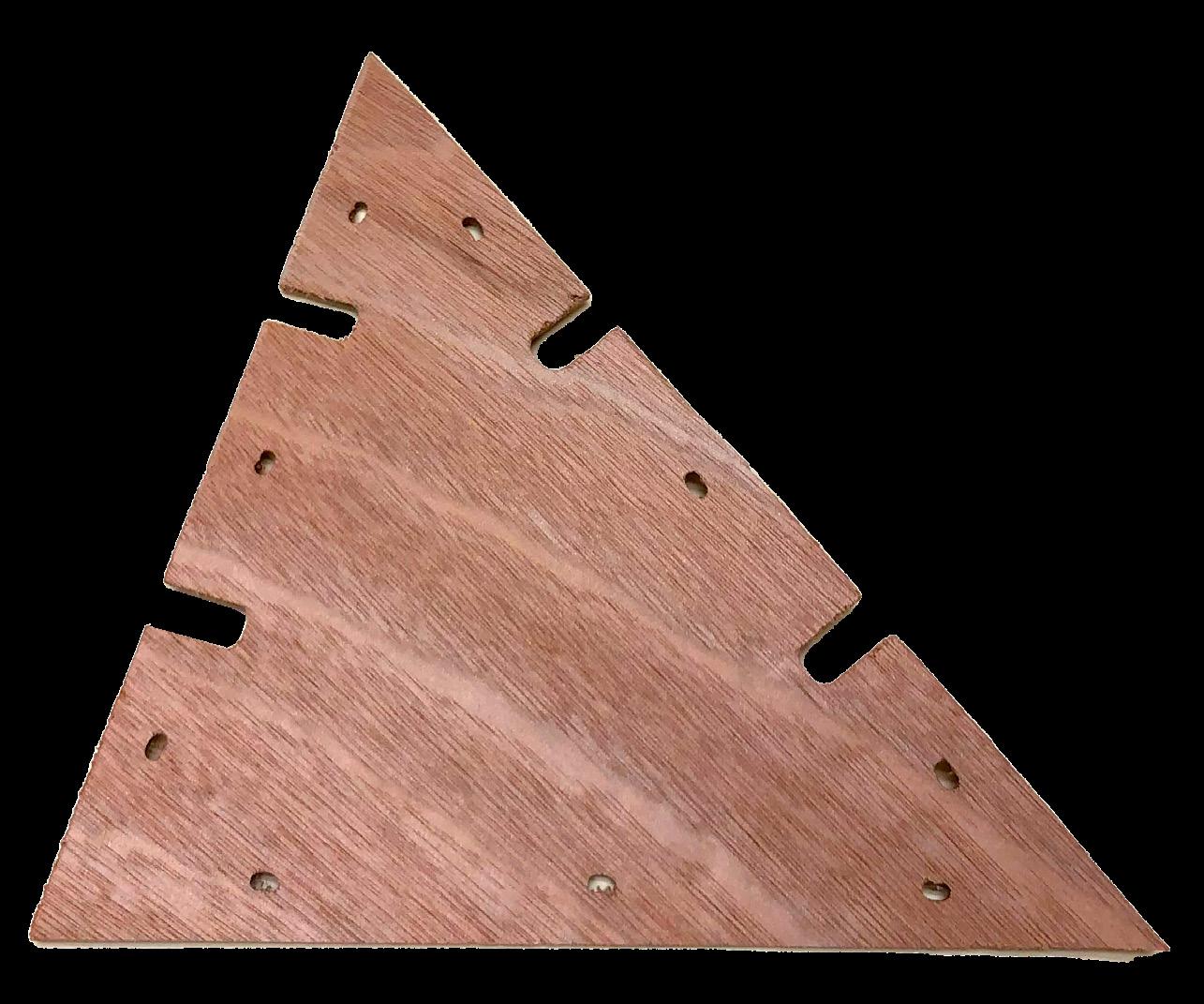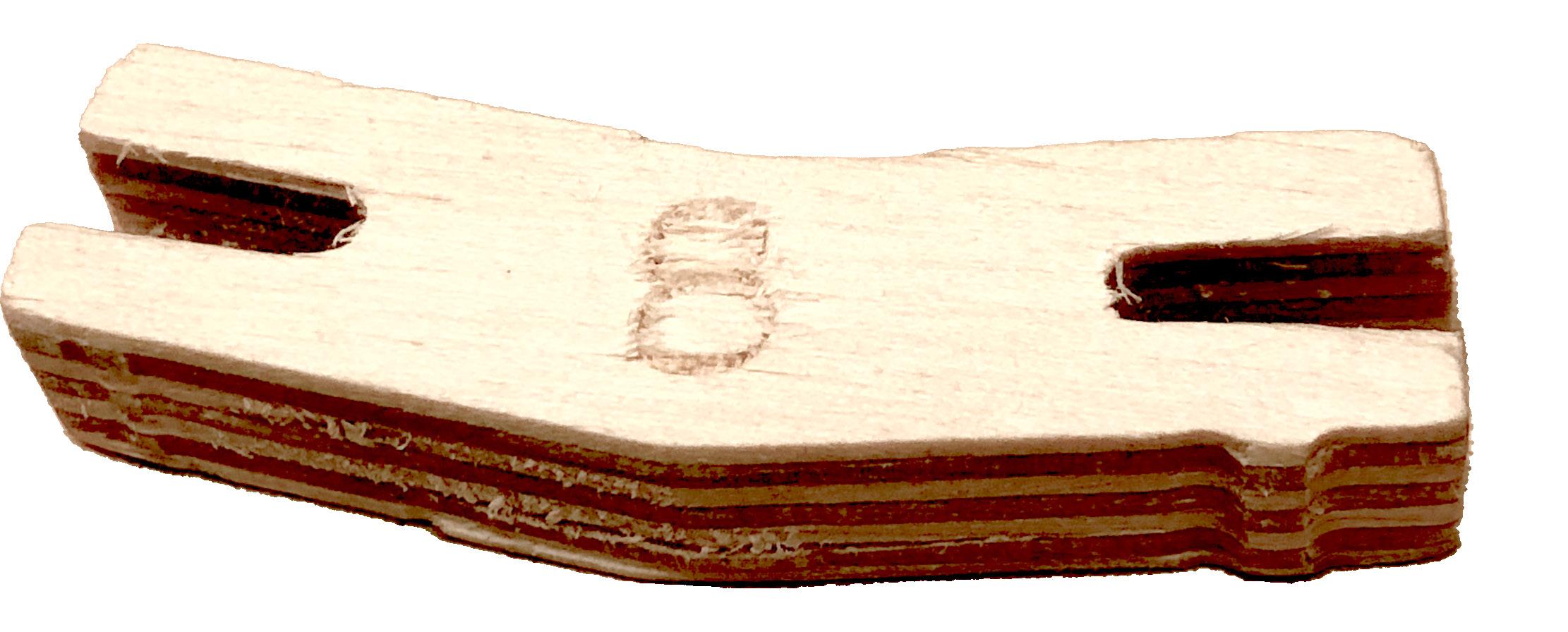 210 Panels were cut from six 4’x8’ sheets of 1/8” thick Okoume plywood. Each edge has two slots with a number matching a biscuit.