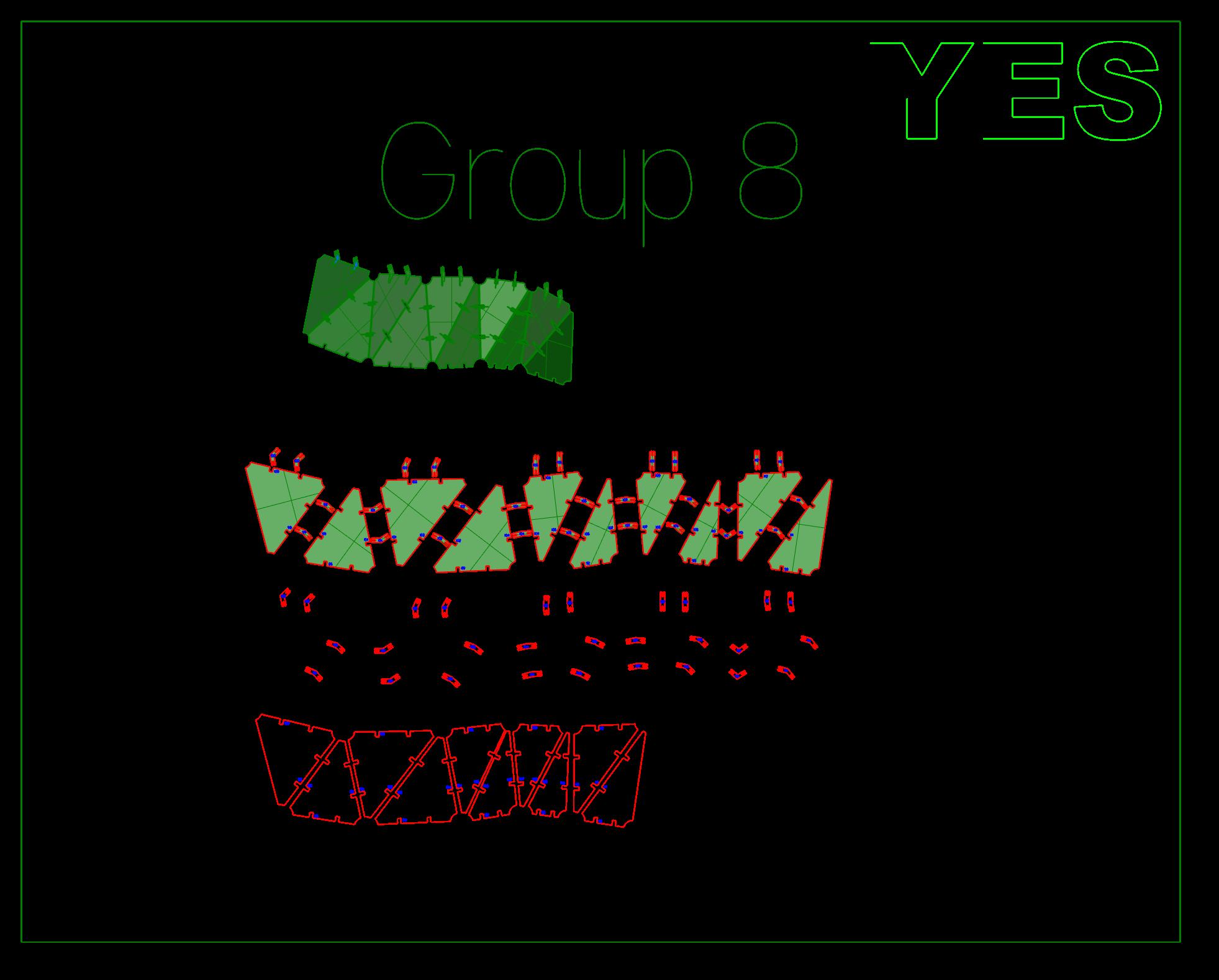 Then plot a stencil (with the material size edge boarder indicating the laser bed) to place the already CNC'd pieces on in the laser bed in exact positions. (We can just put a small piece of tape