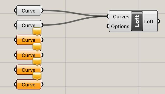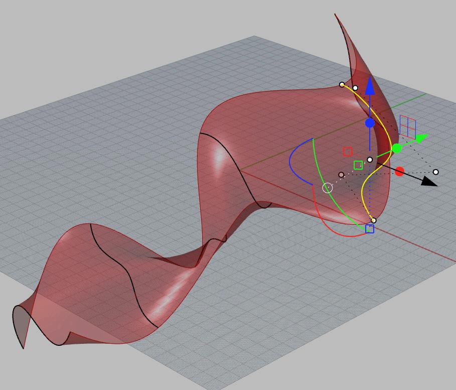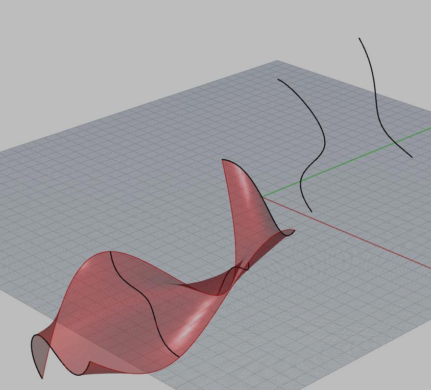 As the curves are added to the GH componant (above) and as curve positions in Rhino change (right) GH updates the surface live