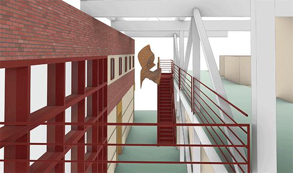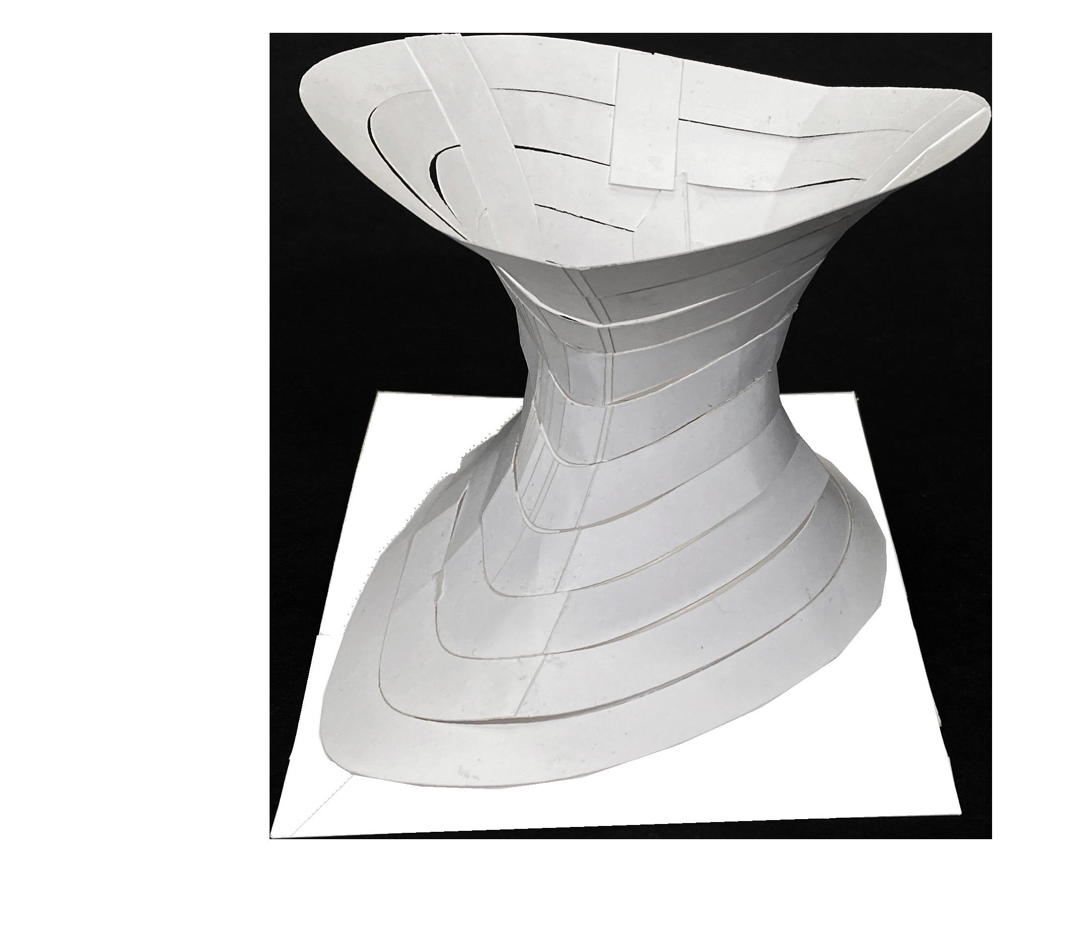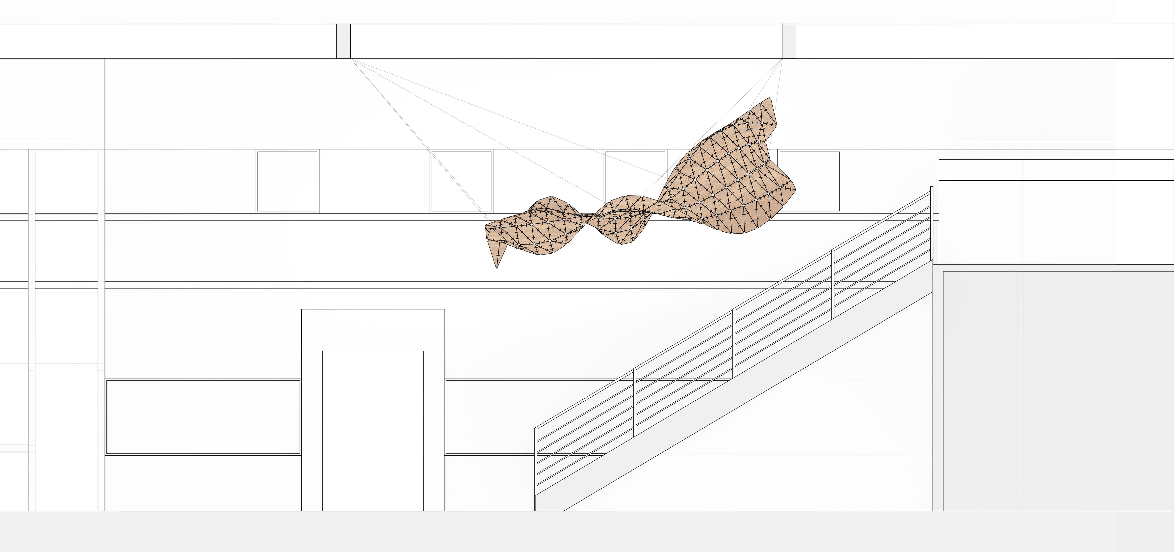 -Develop a form that reacts to the staircase in a way that it morphs around the slope of the stair.