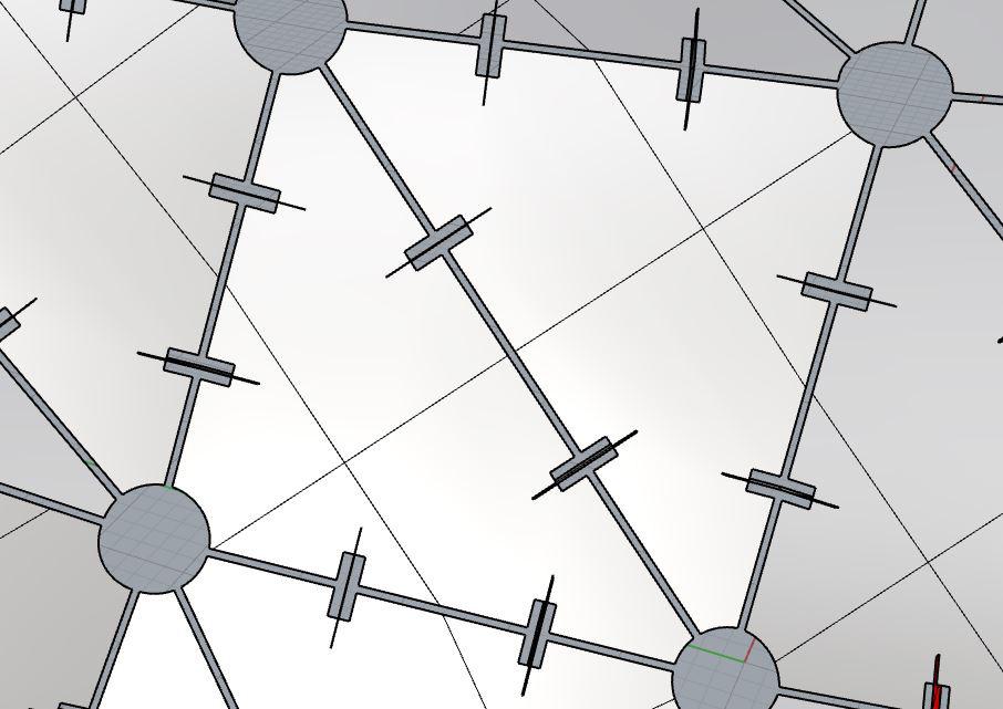 Disks populate the interior edges perpendicular to those curves