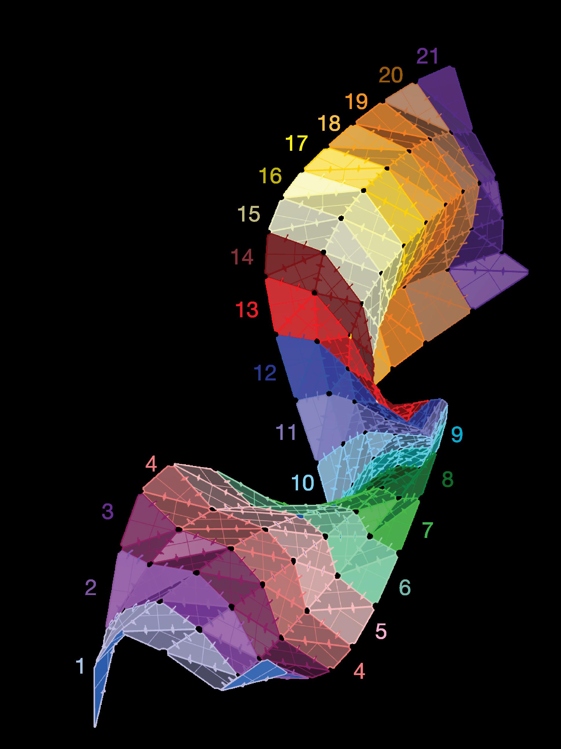 The surface was split into 21 different groups that were clearly labeled in Rhino.