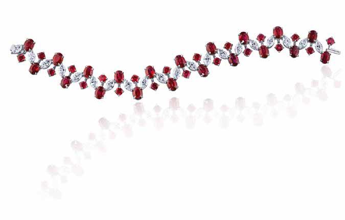 20 oval shape rubies (21.12 ctw) and and 20 cushion cut rubies (6.13 ctw) and 20 marquis shape diamonds (8.10 ctw) set in platinum