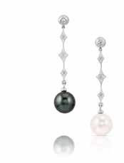Alishan Day and Night: ultimate in luxurious contrast — these platinum earrings showcase both a lustrous South Sea white pearl and a dramatic Tahitian black pearl, accented with diamonds. $3700