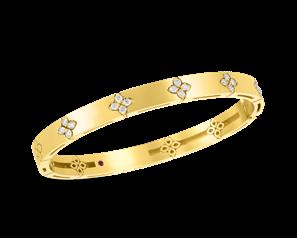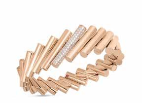 Roberto Coin Domino: Contemporary sophistication defined — this 18-karat rose gold bangle showcases pave white diamonds in a geometric pattern that plays with light and shadow. $26,130
