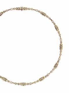 Alex Sepkus Path Necklace: Intricate artistry defines this 18-karat yellow gold necklace, where white diamonds create a winding path of light and shadow in Sepkus’s signature style. $27,690