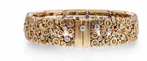 Alex Sepkus Lace Bracelet: masterwork of delicate detail, this 18-karat yellow gold cuff features white diamonds set within an intricate lacelike pattern that took years to perfect. $67,330