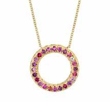 Aaron Henry Wide Embrace: A celebration of color, this 18-karat yellow gold pendant features ruby, sapphire and white diamonds in a contemporary embrace design. $10,650