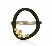 Sarah Graham Pebble Large Circle: Contemporary edge meets organic inspiration in this striking design, combining white and cognac diamonds with black chrome and 18-karat yellow gold.