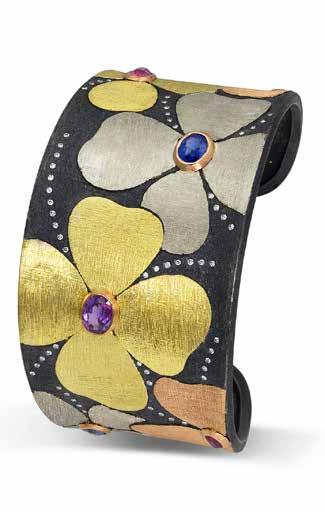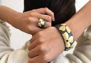 “What I think really makes him stand out in the industry is that he experiments all the time,” she continues. “Whether it’s with metals — and remember, he’s a selftaught goldsmith — or with other materials like wood, he’s always pushing boundaries. And people love seeing that. It’s so different.”