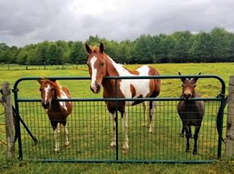“Two paints and a mule waiting at the gate for treats.”