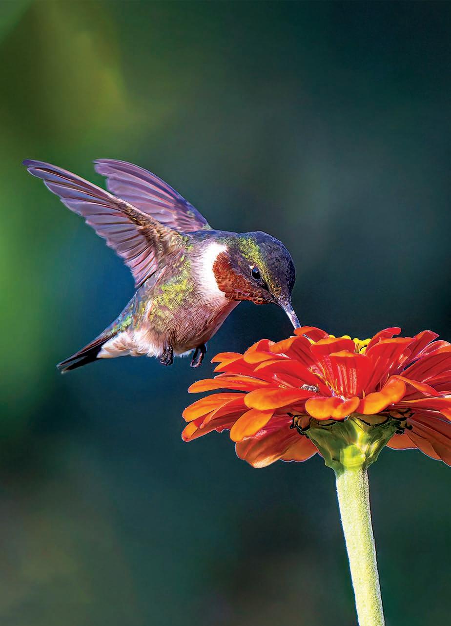 OPPOSITE, FROM TOP A male ruby-throated hummingbird. Since the 1990s, Dan and Cathy Brown have been guardians of a thriving hummingbird habitat near Christoval in West Texas.