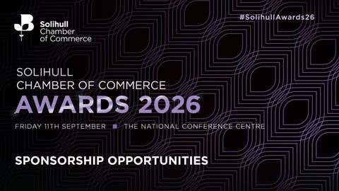 Branding and promotion on all awards-related marketing material, including in ChamberLink magazine with c. 25k readership, regular feature in Greater Birmingham Business News c.14k distribution and Solihull newsletter, logo inclusion on website