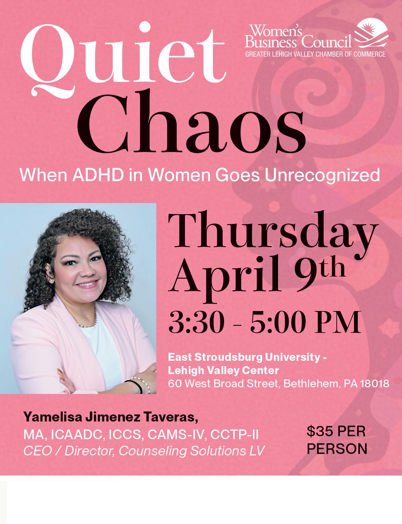 3:30-5pm - Quiet Chaos: When ADHD in Women Goes Unrecognized presented by the Women's Business Council
