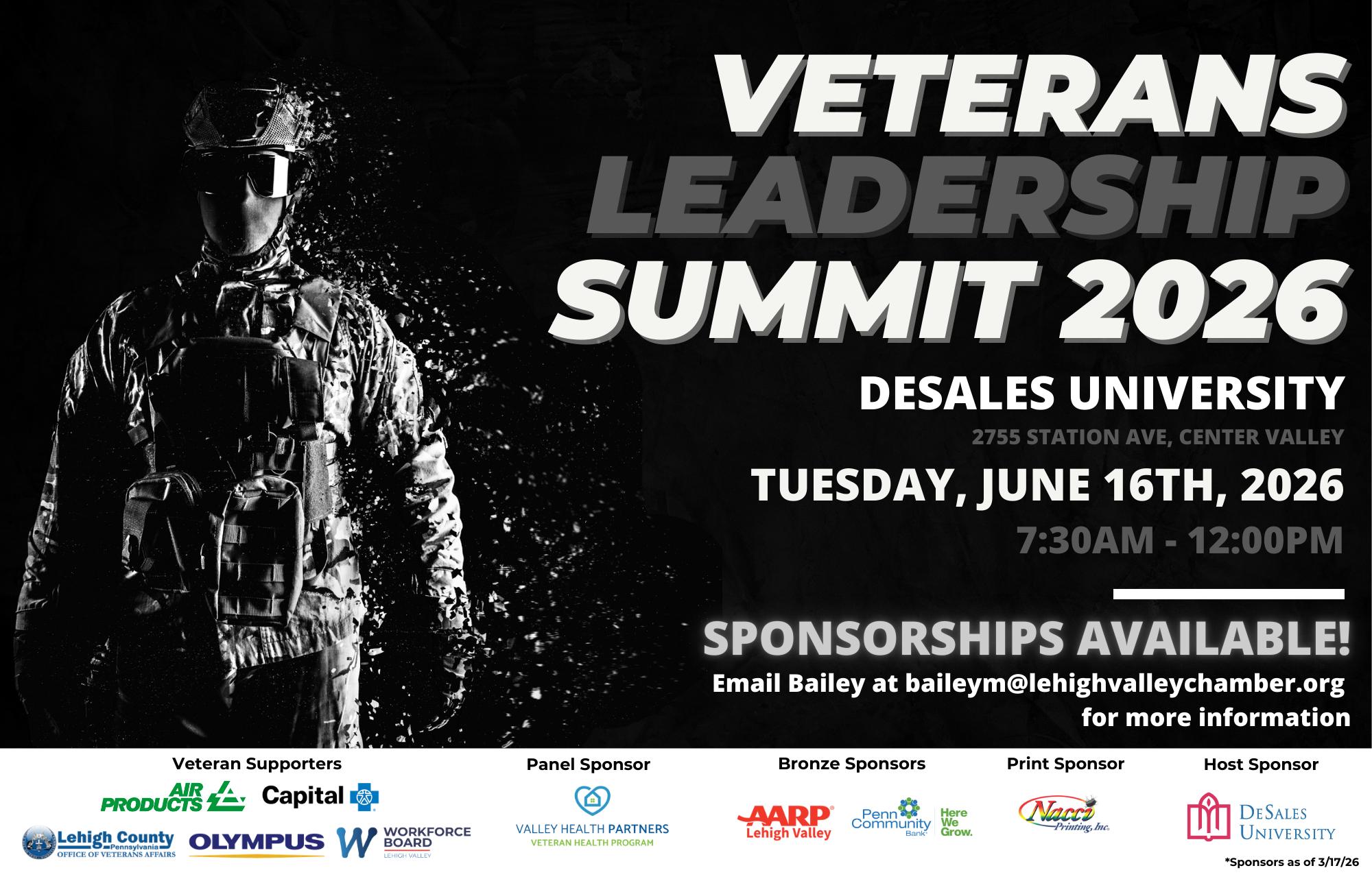 The 2026 Business Summit takes place Thursday, April 30 at DeSales University. Contact Paige Nicholas at paigen@ lehighvalleychamber.org to get a hold of your ticket.