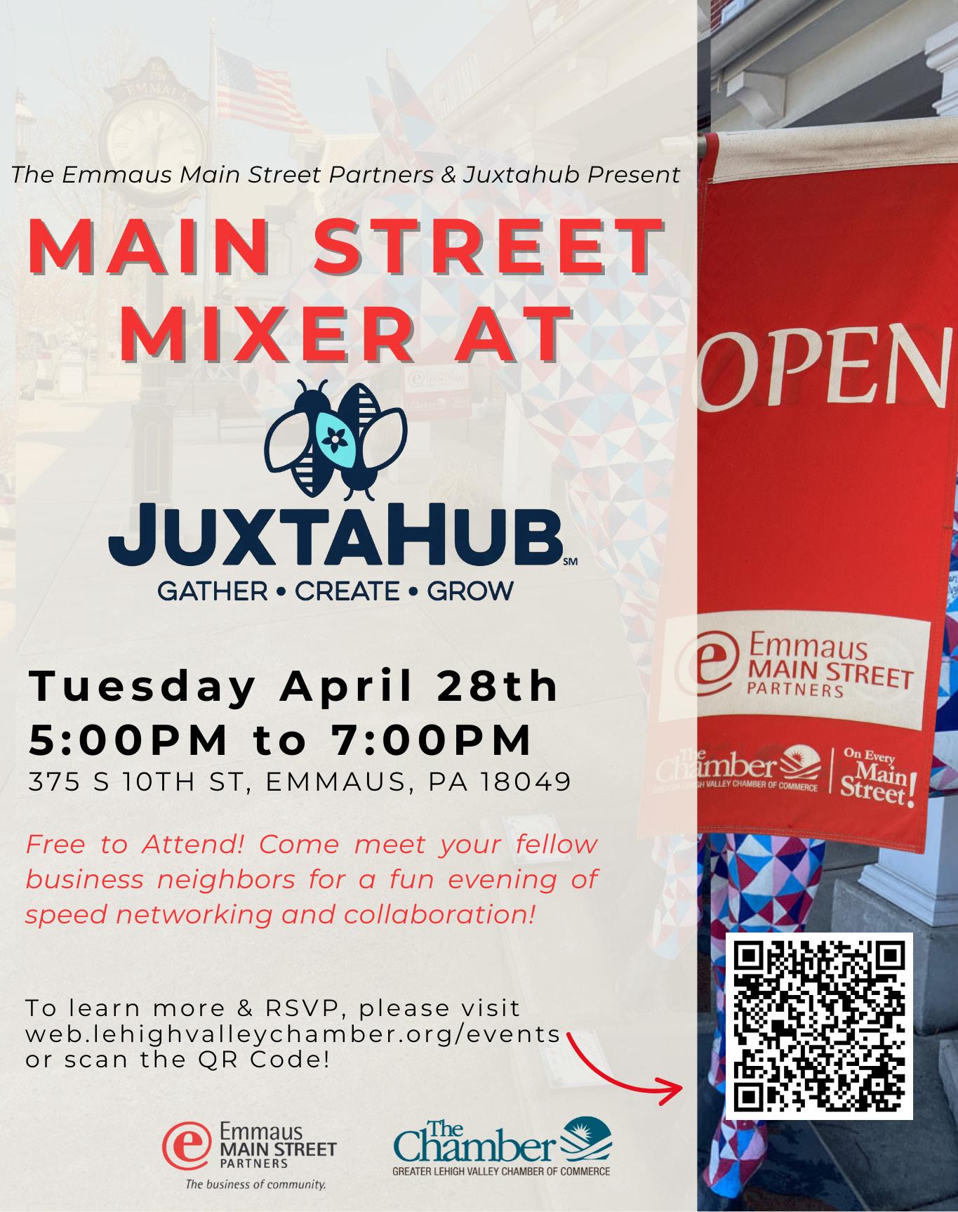 5-7pm - Emmaus Main Street Mixer at Juxtahub (Free Event)