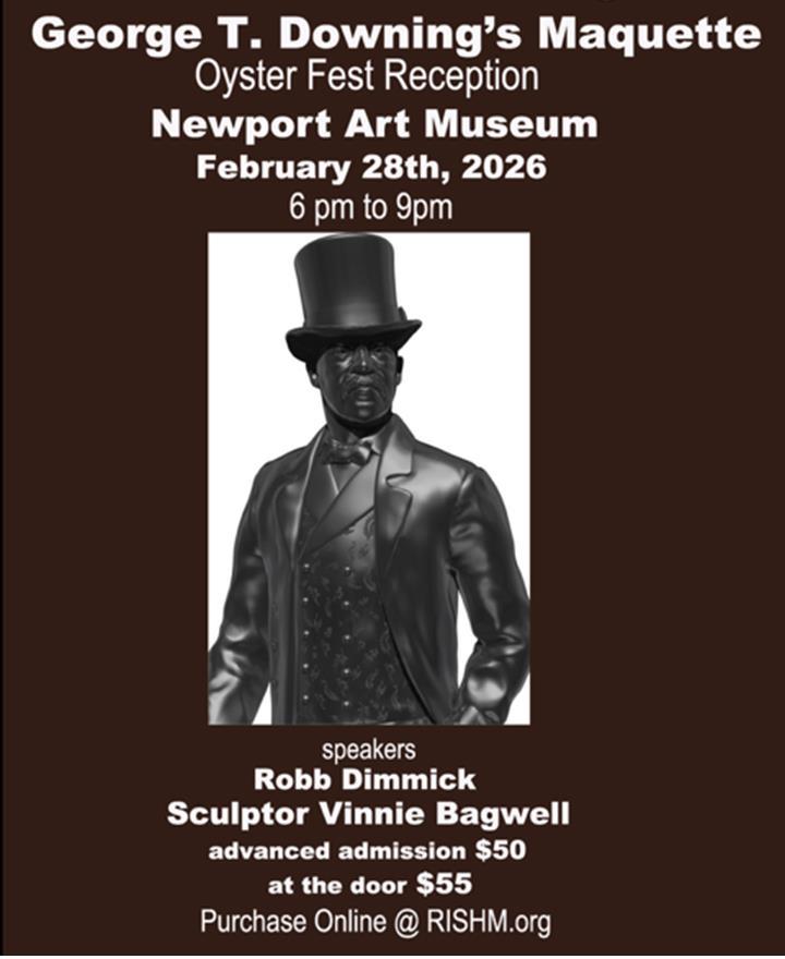 The model of the first statue in Newport to a person of color, George T. Downing, will be unveiled at an Oyster reception and presentation at the Newport Art Museum from 6-9pm February 28, a Black History Month event hosted by Rhode Island Slave History Medallions. Robb Dimmick of Stages of Freedom will speak on the importance of recognizing Mr. Downing, entrepreneur and civil rights advocate for combatting racism. Sculptor, Vinnie Bagwell, will talk about her process in creating the model.