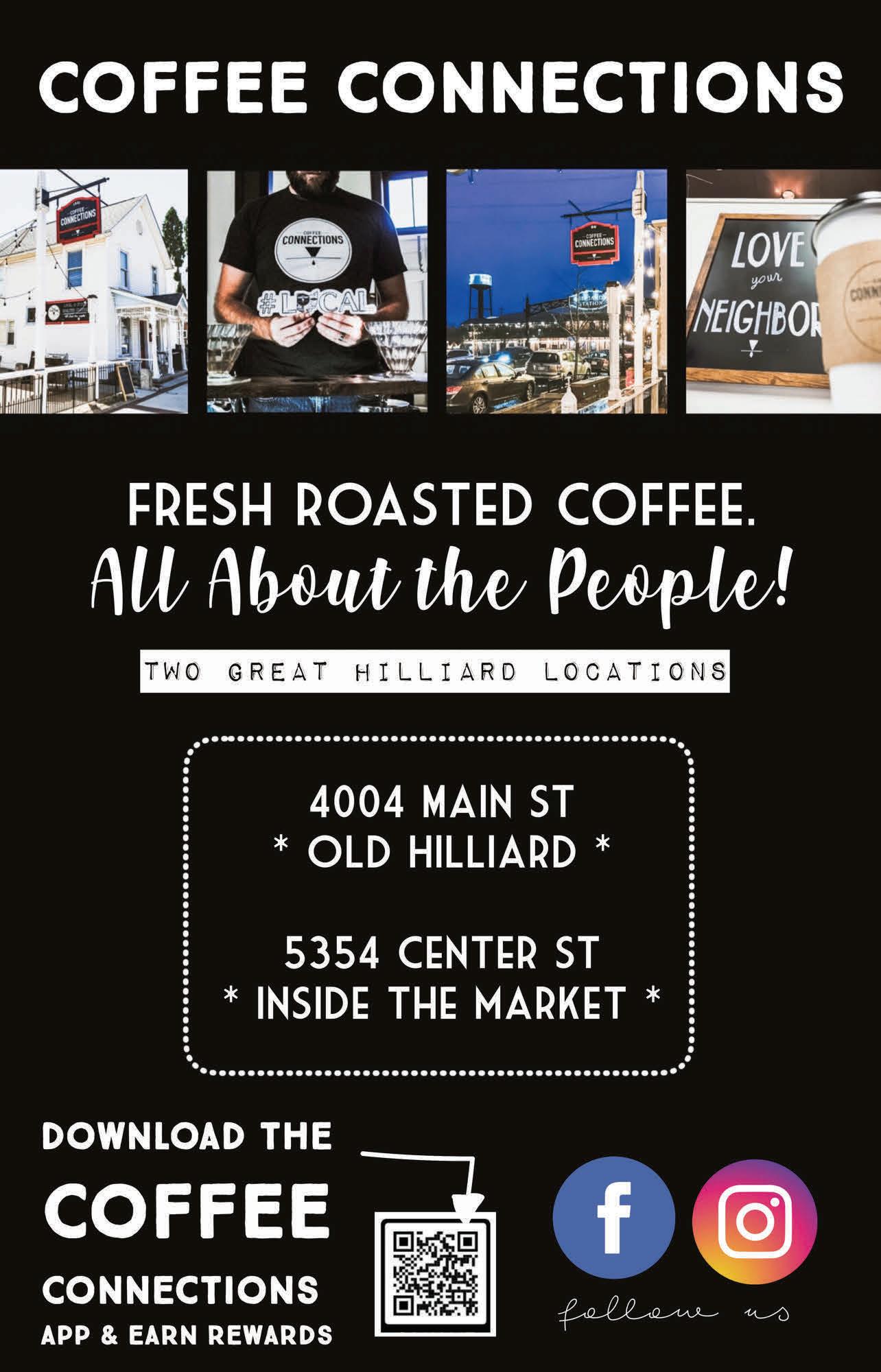 Coffee Connections started as a mobile cart in 2014 before opening its Old Hilliard storefront in 2016. Located across from the original town square, the building was a part of the epicenter of life in Hilliard when it was built in 1920. Over the years, a now-demolished building on the coffee shop’s current patio was a bait and tackle shop and a bakery, and during World War II, it even served as a ration station. Now, the beautiful coffee shop and patio are a gathering place for visitors who love fresh-roasted coffee and locally made pastries.