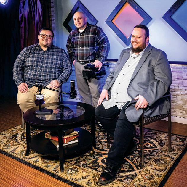the Office of Information and Public Communication for the City of Brunswick and Access Specialists Ben Staunton and Chris Golian. Together, they run the studio at 4274 Manhattan Ave., near the intersection of Pearl and Center roads. BAT’s home since 2010, the studio features three separate filming sets and a podcast recording room that opened in 2021, thanks in part to an equipment donation from the Rotary Club of Brunswick. In addition, a kitchen that can double as a set for cooking-themed shows is fully equipped with professional cameras and editing equipment; it is available to residents to use on a first-come, first-served basis.