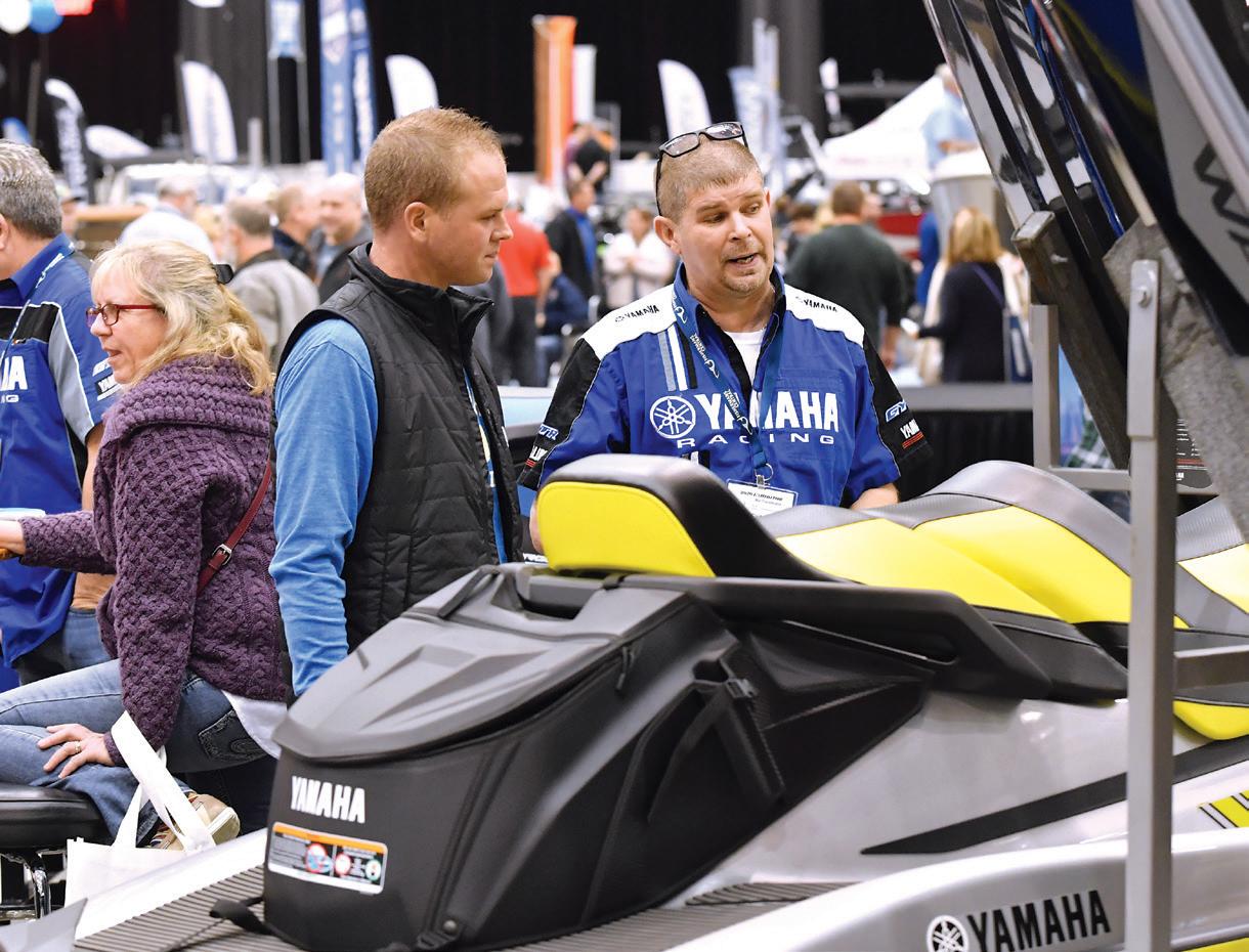 “Like at a car show, you can compare all sorts of makes and models at the boat show,” explains Burke. “But unlike a car show, at our boat show you can buy what’s there. You can get financing right there. And getting in and experiencing the physical boat can help answer a lot of your questions. Layout of seating, for example, is important. Getting in the boat gives you a feel.”