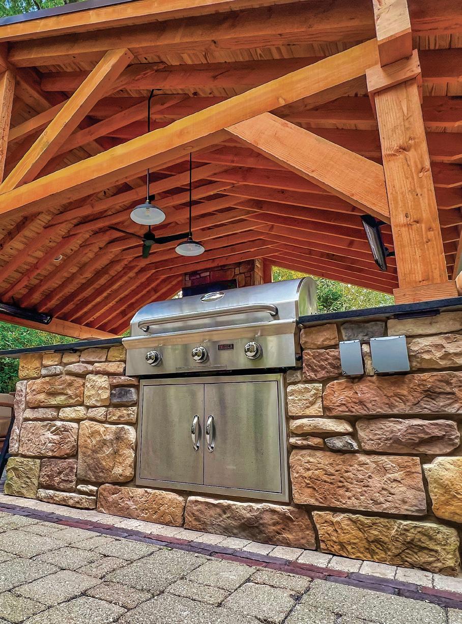 What’s “in” is out. Practically every appliance and fixing you can select for your home’s interior kitchen is available for the outdoor version. “We are seeing sinks, fridges, smokers we can build in, more elaborate grills, flat-topgriddles and granite countertops,” DiGregorio says.