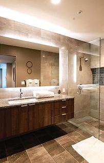 through aforementioned entrances left without doors to enhance the look and feel of a fresh, fun hotel suite.