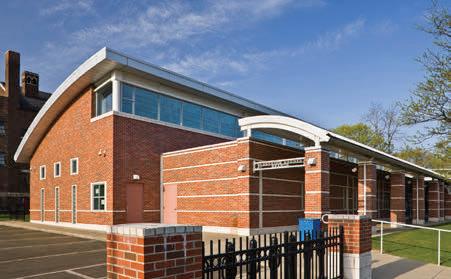 Reinhold’s design optimizes the property’s east and west views as well as the pool house’s limited square footage, an effort that created room for under-cover lounging. A blue mirror extending over the length of blackgranite-topped cabinetry along one wall (a feature suggested by Mike Kelly of Cleveland-based Glass Inc. that makes the reflection of sky and lake look even bluer on a clear day), together with the owners’ wall-mounted TV and ceiling-mounted fans, provide the look of an outdoor bar with stainlesssteel-fronted refrigeration units, a Kegerator and storage without the service-bar-with-stools itself.