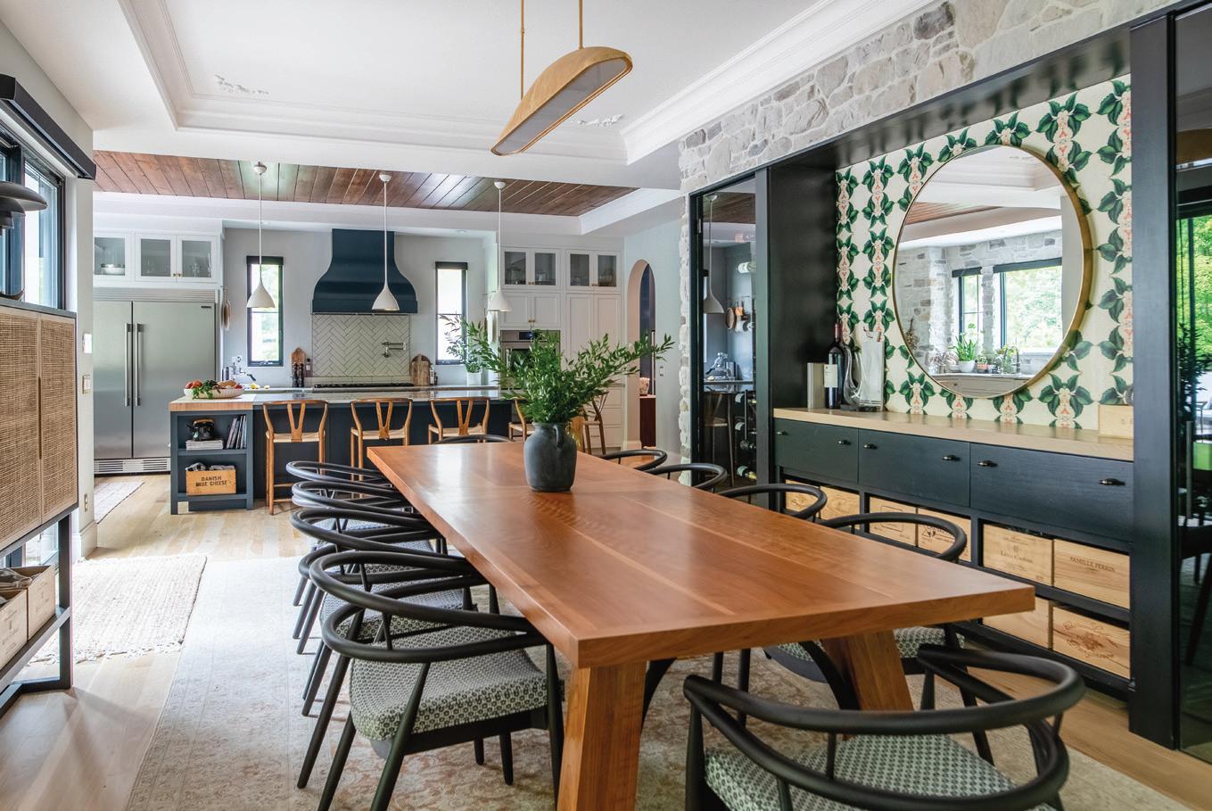 Allison Smith began working with Schill Architecture in Westlake on designing a 10,000-square-foot home that showcased the property’s stunning natural beauty and honored the area’s history — she notes that the lot is right next to an 1830s flour mill. The five-bedroom, seven-bath stoneand-stucco structure, which she describes as “eclectic French country,” comfortably accommodates a workfrom-home couple with two daughters and a lot of hobbies. “We wanted rooms for everything,” Smith says. It also serves as a venue for large gatherings.