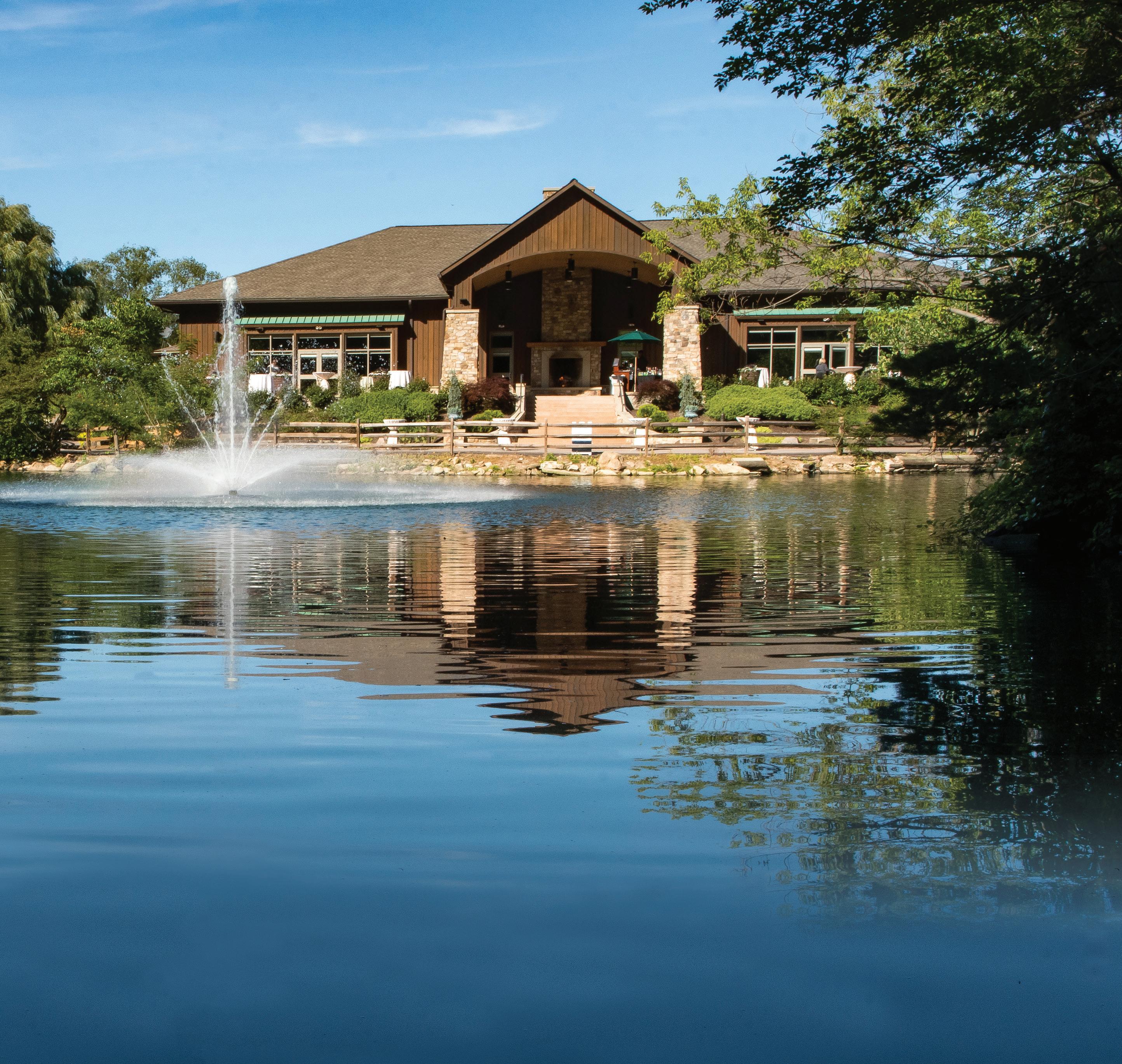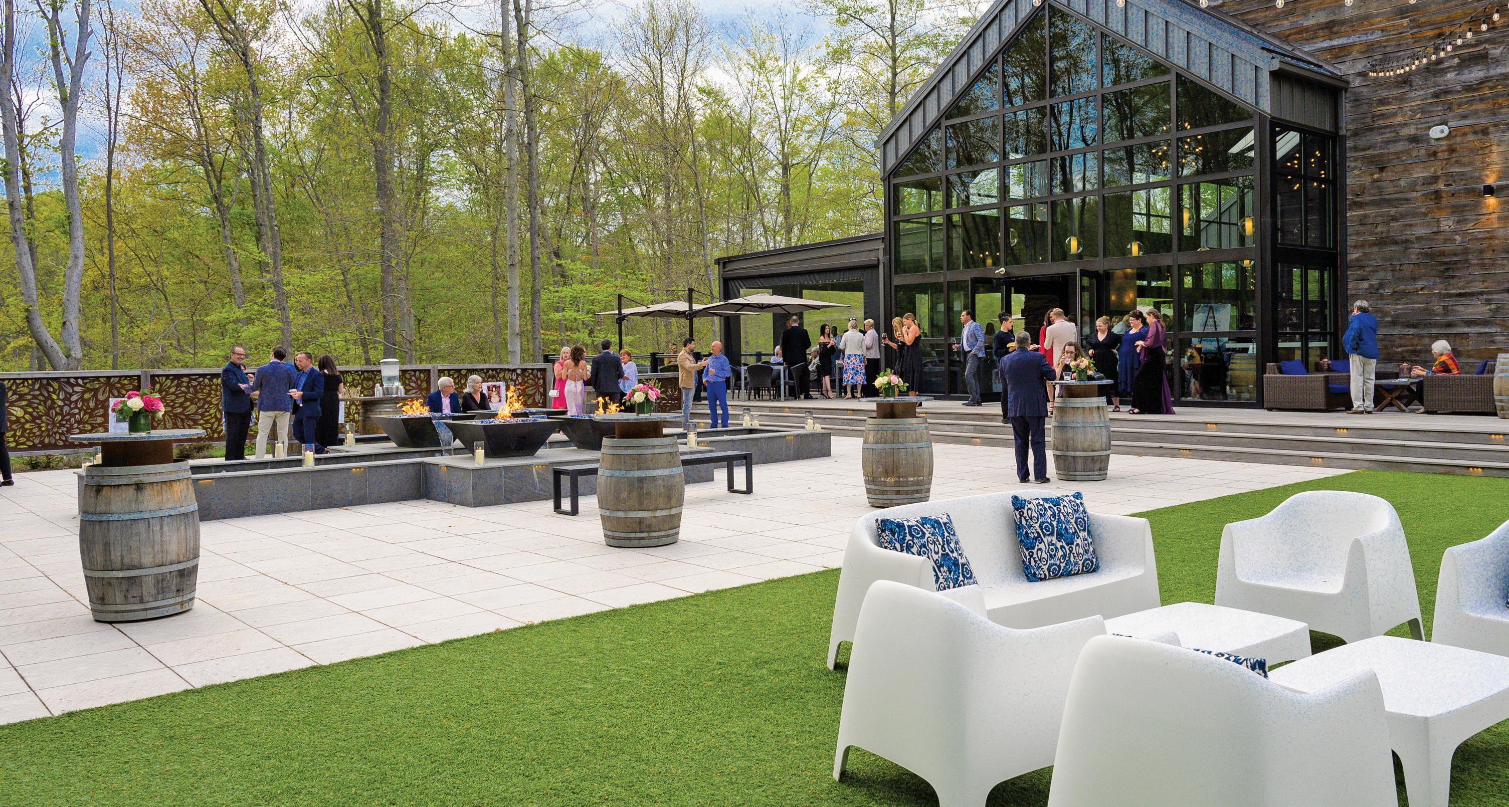 views of trees and the woods adjoining them; and the Cellar Lounge, which exudes a modern vibe with booth seating and a patio with a wine-barrelhead water feature.
