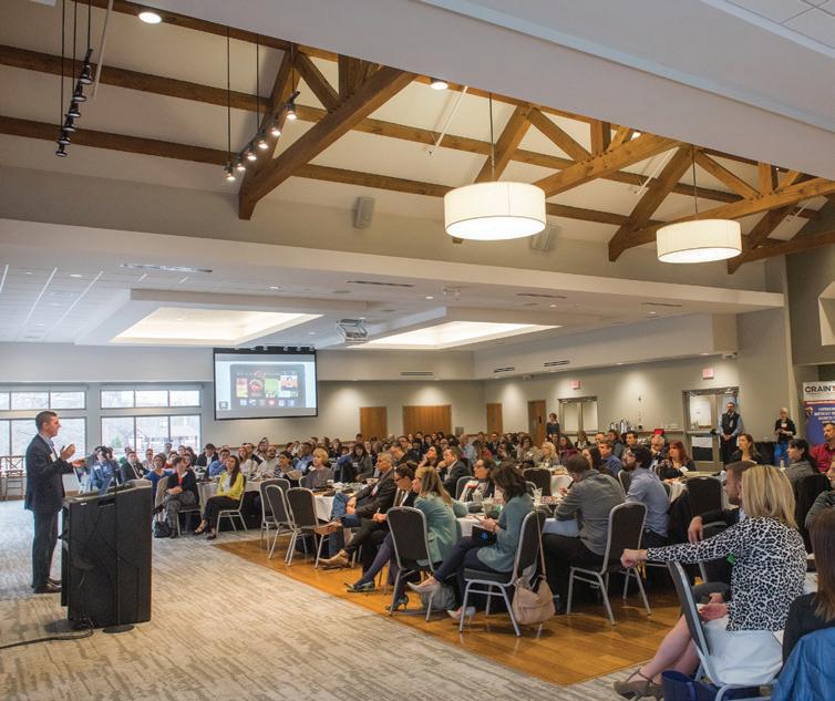 The conference center’s team caters to those dietary needs and others that need to be addressed: Executive chef Dean Diluciano is known for creating interactive buffet stations — which range from Asian rice bowl to taco, dog and burger, and pasta — where attendees with food allergies and special preferences can personalize lunch and dinner selections. LCCC baker Maggie Gross specializes in crafting finger-food desserts, which often include salted caramel cheesecake bites and edible chocolate cups filled with chocolate or raspberry mousse.