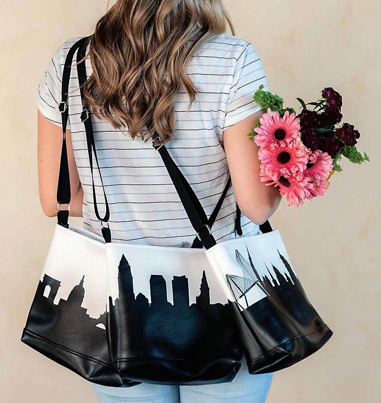 Anne Cate began when Johnson was a student in Kent State University’s fashion merchandising program. Armed with a single sewing machine in her dorm room, unbridled ambition and the help of her advisors, she began making skyline pillows for her room — and to sell. Her business is now 10 years old and offers both heavy-duty canvas and vegan leather (vinyl) purses.