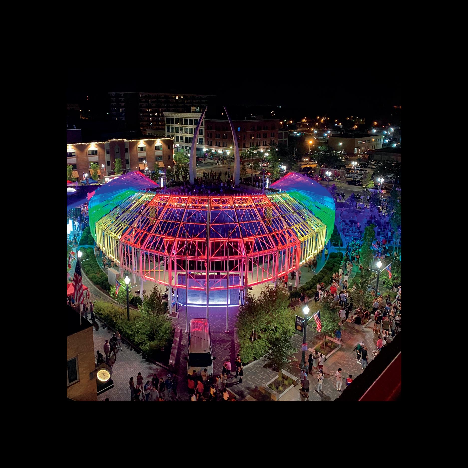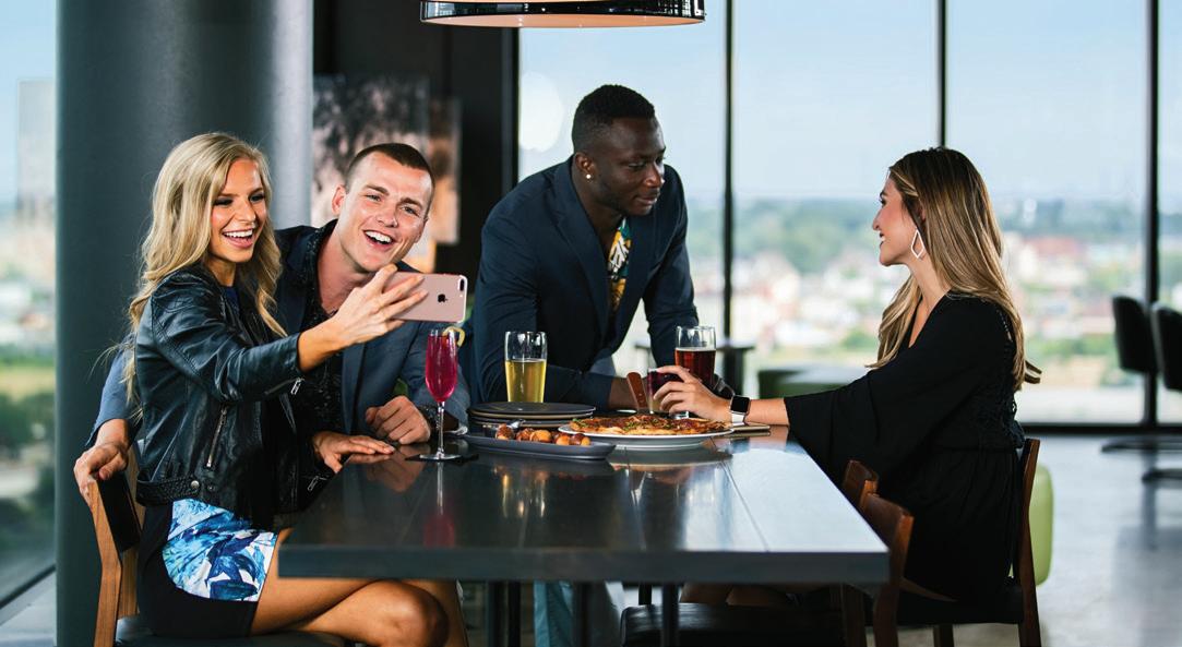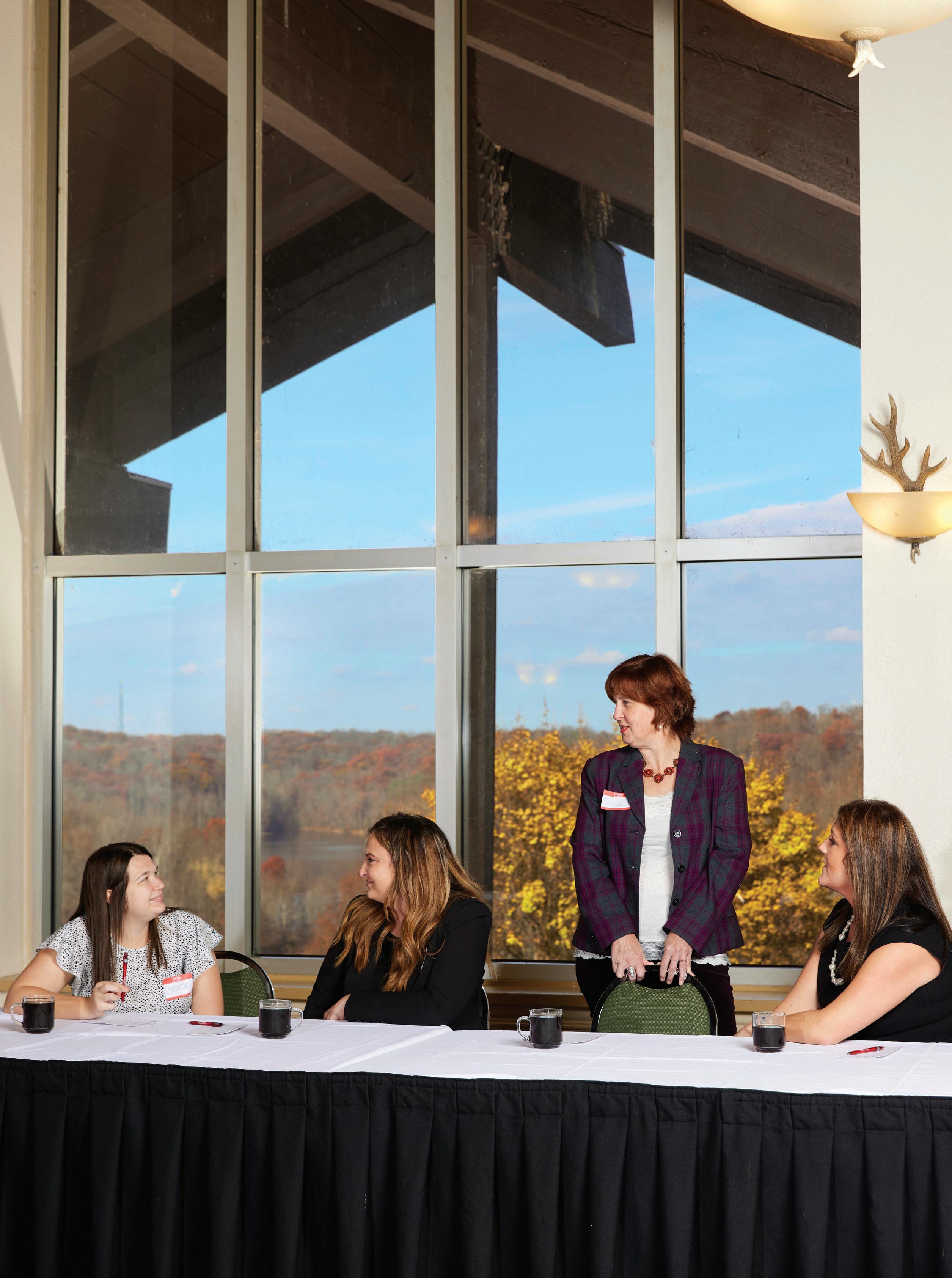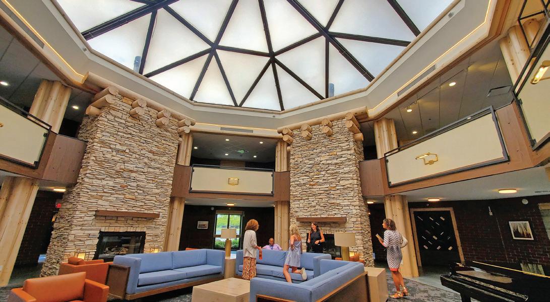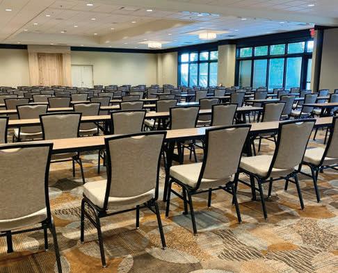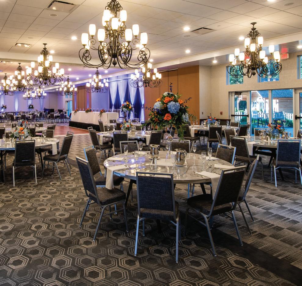 views of Acton Lake and opportunities for recreation. After the meeting, make a visit to the on-site Nature Center’s Raptor Rehabilitation Center to see healing birds of prey such as bald eagles, hawks and owls, or enjoy an evening around the fire. The 108-foot Hueston Woods Covered Bridge is located on the property as well. 5201 Lodge Rd., College Corner 45003, 513-664-3500, huestonwoodslodge.com