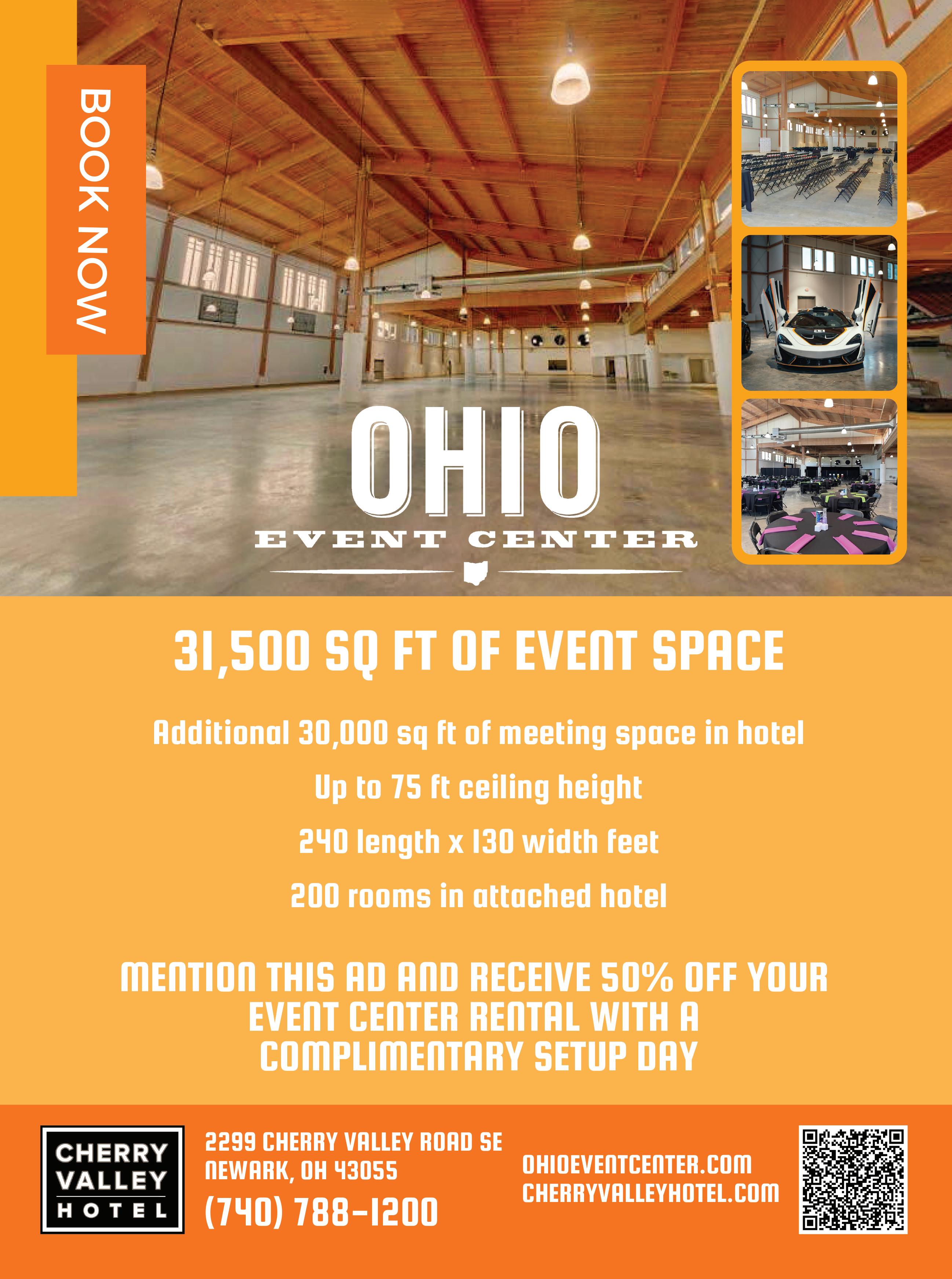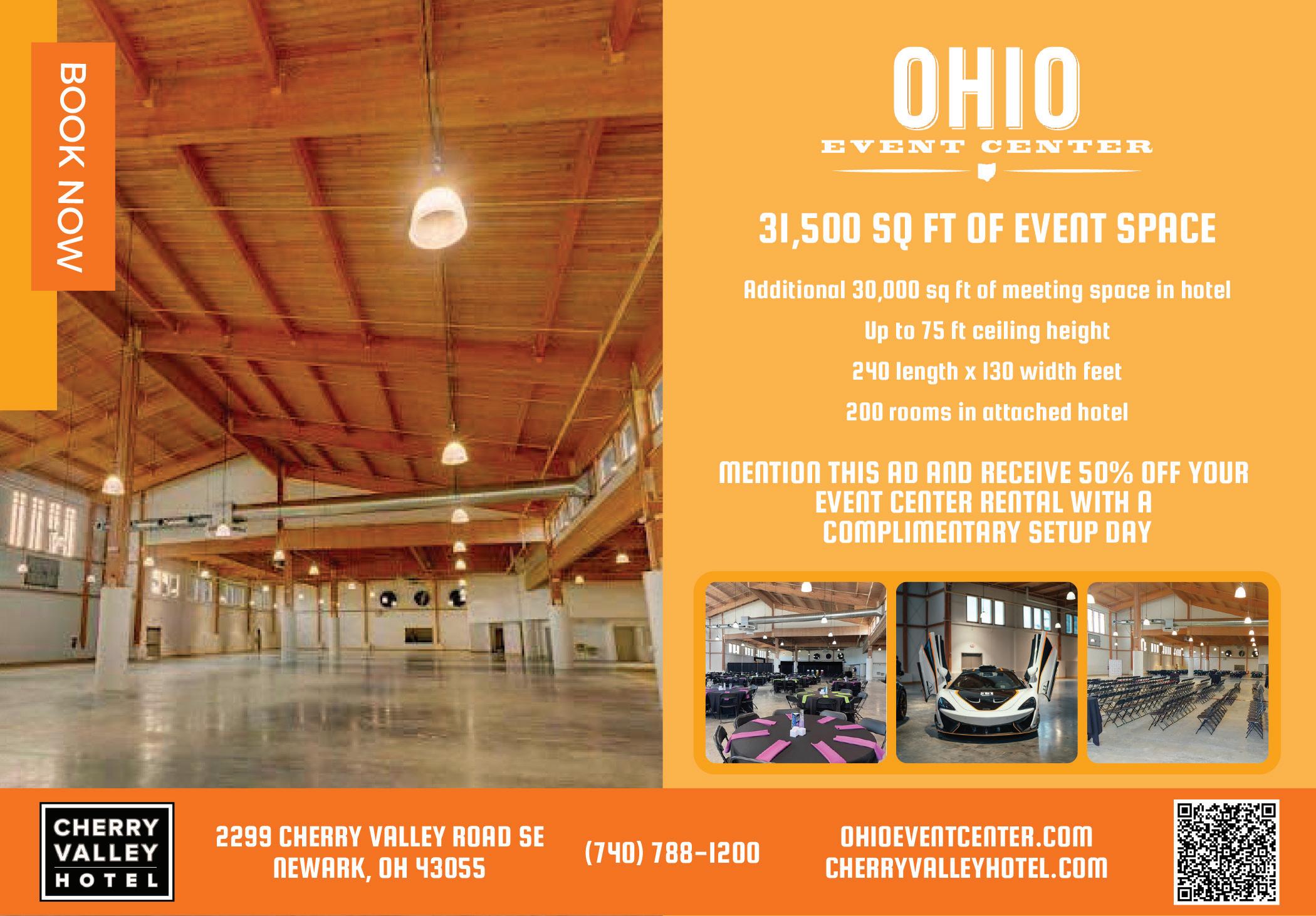 Adventure awaits in the Hocking Hills. Cedar Grove Lodging’s Haven Event Lodge has a more than 250-person capacity meeting space as well as indoor and outdoor AV equipment. Its location a little more than a mile from Hocking Hills State Park’s Old Man’s Cave makes this spot a central location for exploring the area’s variety of trails, waterfalls, caves and gorges. Cedar Grove Lodging can also help you choose from nearby outdoor activities. If you don’t want to stray too far, there are on-site trails, a fishing pond, a gas fire pit and a large open lawn for group outdoor events. 19555 St. Rte. 664 S., Logan 43138, 740-380-2209, cedargrovelodging.com