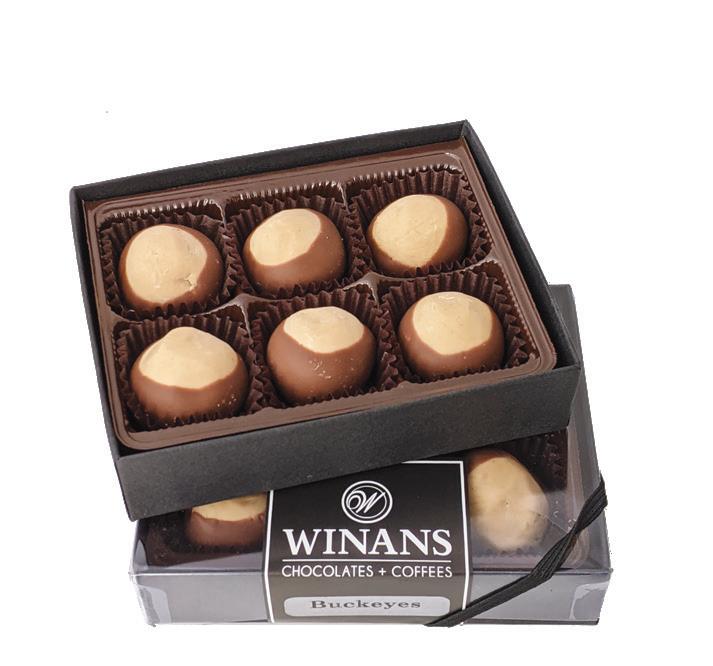 What better way to take a piece of the Buckeye State with you than the chocolate-and-peanut-butter confections from Winans Chocolates + Coffees. Crafted from rich cream and real peanut butter in Piqua, the fourand six-piece boxes make for great favors. winanscandies.com