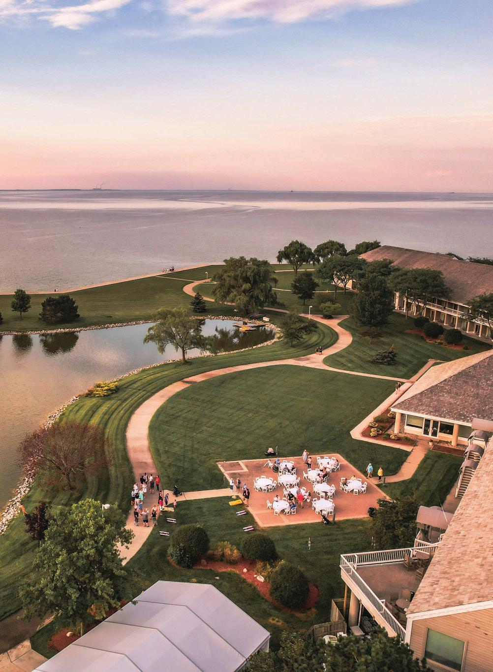 Explore where the land meets Lake Erie at this conference center in Lucas County. The Grand Ballroom can host corporate events of up to 330 participants (550 in a theater set up), while four other meeting spaces can hold groups of 40 to 100 people. Enjoy a private catered event such as a New England Clam Bake or book on-thewater activities like pedal boats or canoes. Take a walk along the wetland boardwalk for the chance to see water birds, mink and other animals. 1750 State Park Rd. #2, Oregon 43616, 419-836-1466, maumeebaylodge.com