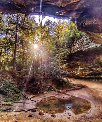 THE WEATHER In spring and fall, frequent rain fills the many waterfalls. Summer temperatures are comfortable with cooler temps found in caves and gorges, on shaded trails and in the evening. In winter, temperatures can dip below zero degrees. VISITOR INFORMATION: 1-800-HOCKING (462-5464), ExploreHockingHills.com