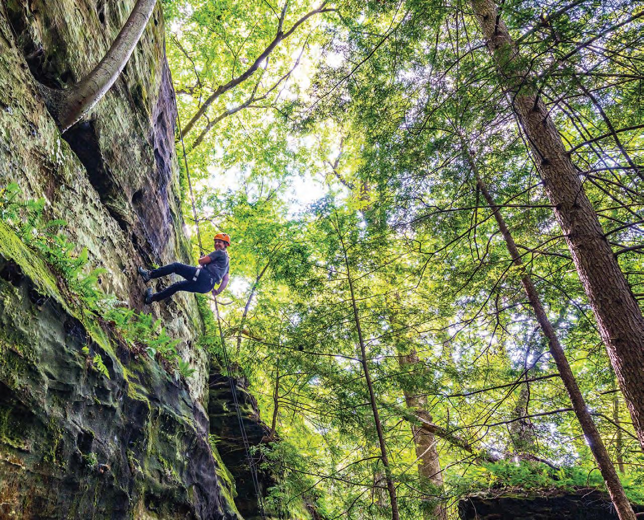 High Rock Adventures in Rockbridge offers a range of climbing challenges or rock and cliff rappel from 35- to 75-feet drops. Rappels include flat wall, canyon and a leaning rock. No experience is necessary and gear is provided. Get a masterclass not only in rappelling or rock climbing, but also in the local environment when you book a private tour with Hocking Hills Adventure Trek. You’ll get off the beaten path in the expansive Hocking State Forest with an experienced guide.