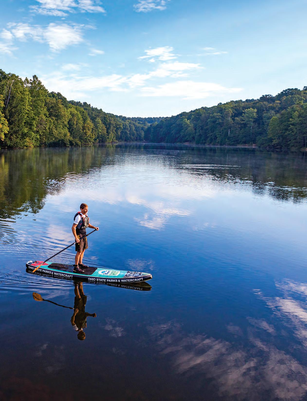If you’d rather power up on the water, rent a pontoon at Lake Logan Marina, or drop a line in this no-wake lake. Strouds Run State Park permits boats with less than 10 horsepower on Dow Lake, and there is a launch ramp at the northeastern edge. You can rent pontoons, canoes, kayaks, paddleboards and pedal boats at the boathouse in spring, summer and fall.