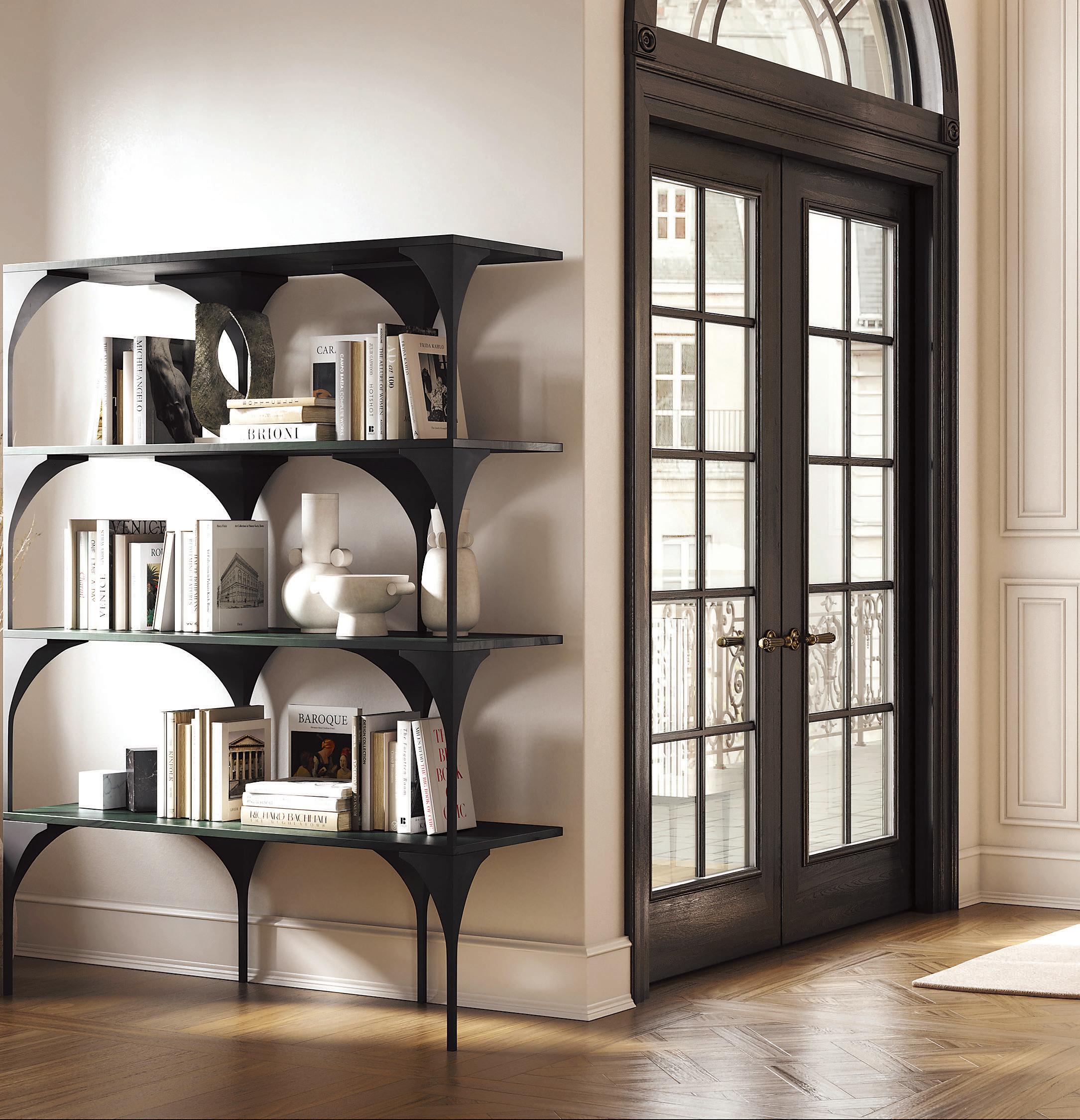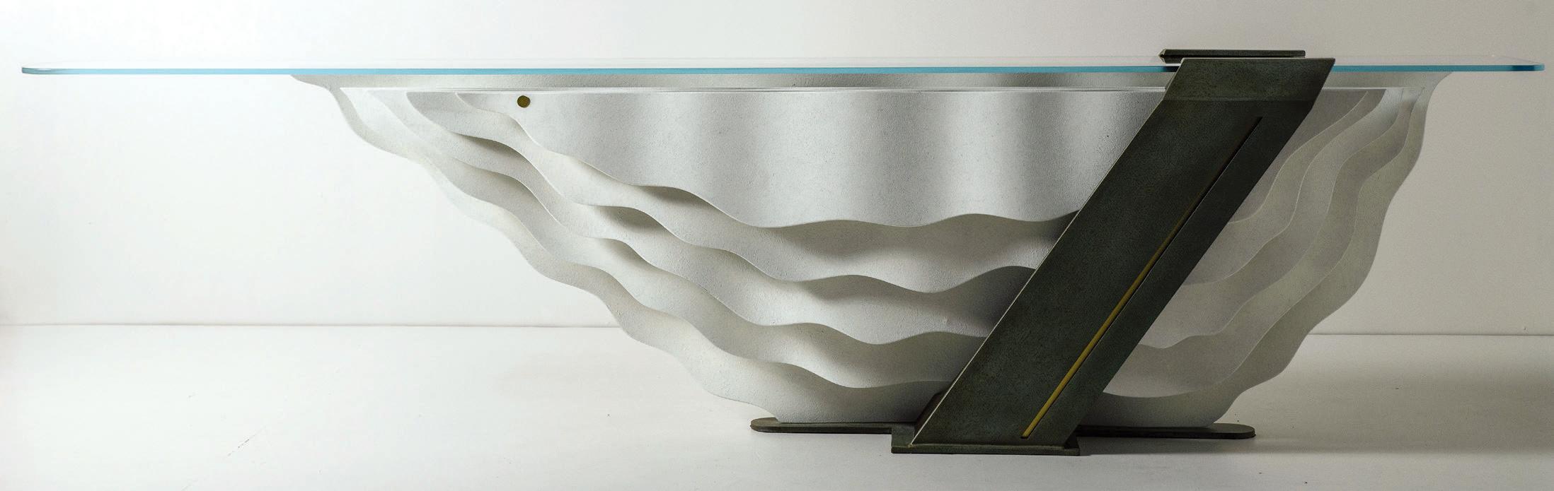 One such example is the 24-karat gold dust infused into the wood grain gilded legs of the Duet Nesting Tables, which was inspired by The Monet Family in Their Garden at Argenteuil, painted by Edouard Manet.