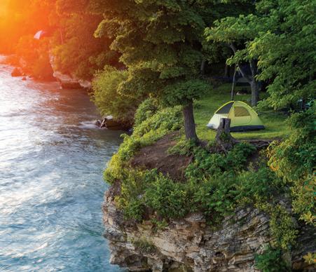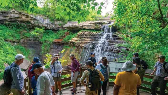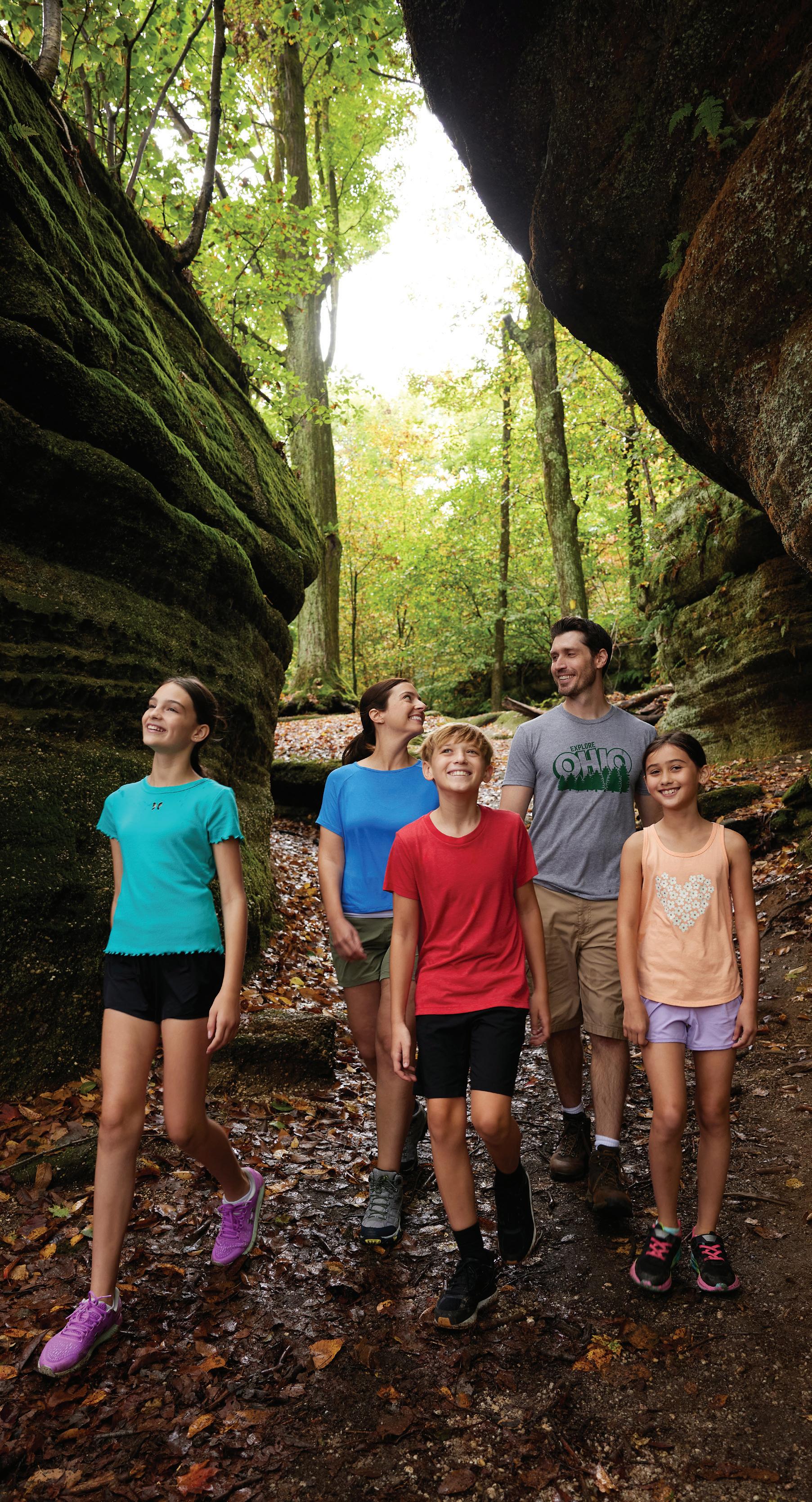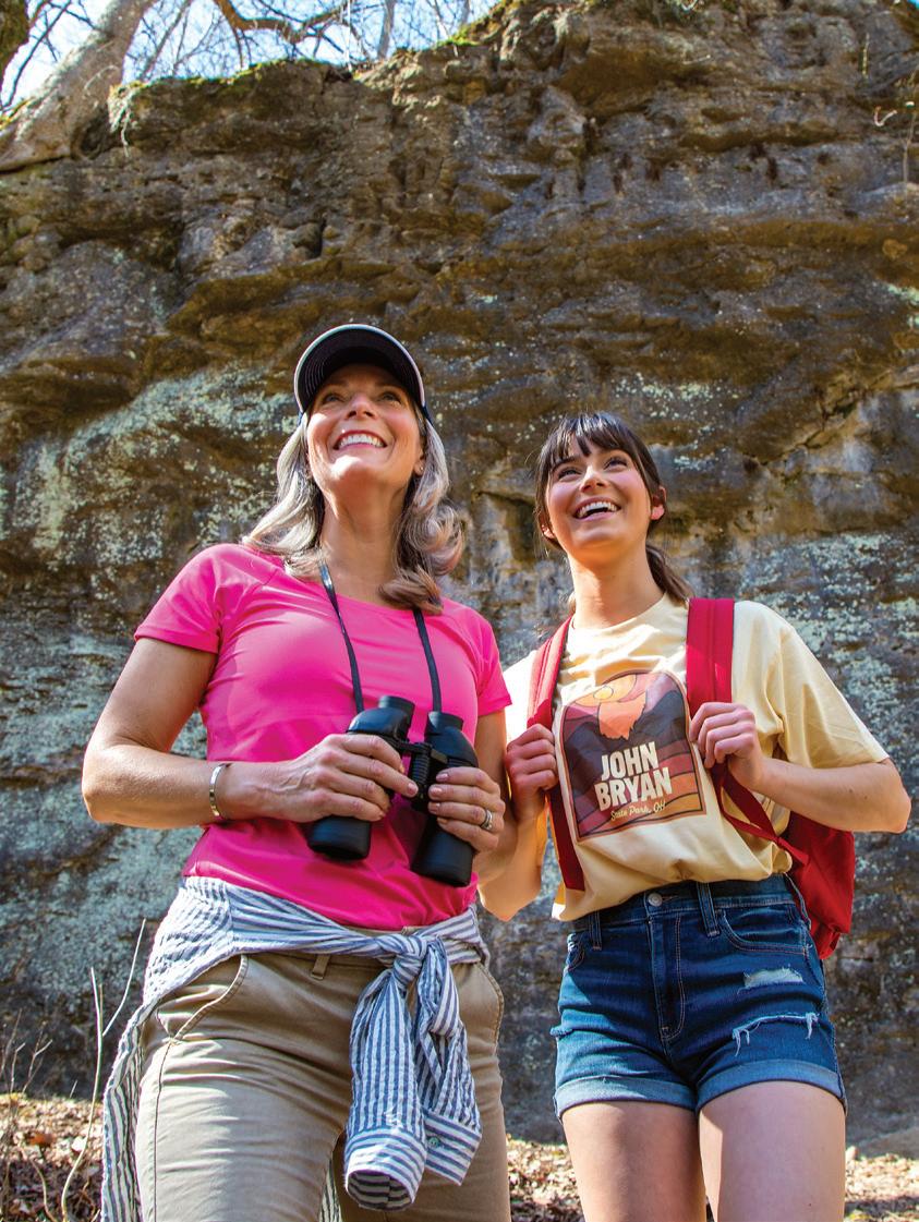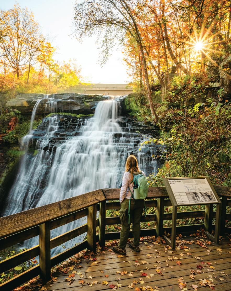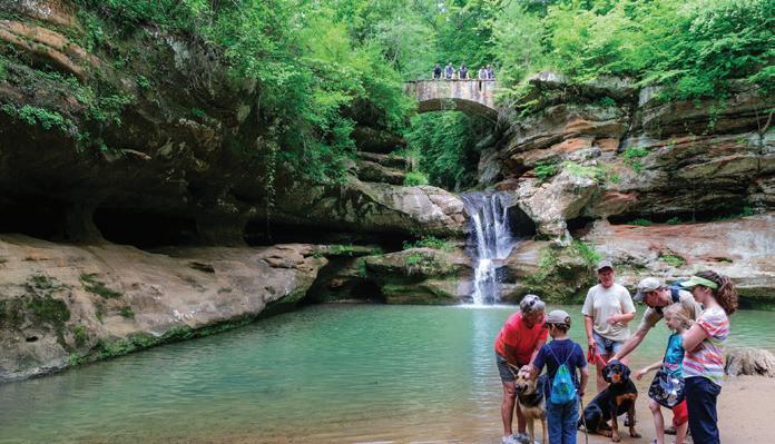 NORTHEAST With its mile-long natural sand beach — the largest sand beach in the state — there’s plenty of room for sandcastles at Headlands Beach State Park in Mentor. Keep an eye out for nesting bald eagles as you walk the shoreline to find beach glass. With its lush forests, Mohican State Park in Loudonville is a hiker’s paradise. Stop in the new visitor center before setting out for a day of biking, horseback riding, and paddling along the Mohican River. Get amazing views of Minnehaha Falls and sandstone cliff formations at NelsonKennedy Ledges State Park in