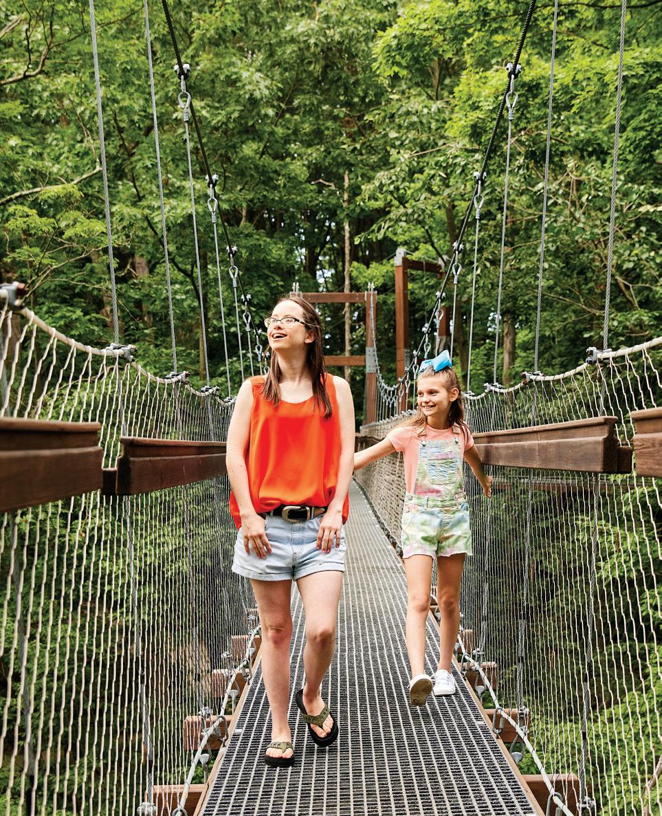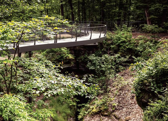 IN BLOOM Meander through butterfly and wildflower gardens at Holden Arboretum in Kirtland, then take in treetop views on the 65-foot-high Murch Canopy Walk or the 120-foothigh Kalberer Emergent Tower. At Kingwood Center Gardens in Mansfield, some unlikely residents live amidst the blooms. Peacocks roam the grounds, displaying their brilliant blue and green feathers.