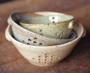 Kessel’s mushroom mugs began as a whim but quickly became a customer favorite. Other nature-themed pieces depict floral and celestial elements. Kessel says she loves treating each mug as an empty canvas for what inspires her each day. She also makes oil bottles, plates, vases, garden bells, saltand-pepper shakers and other Earth-inspired pieces that serve as both beautiful and functional works of art.