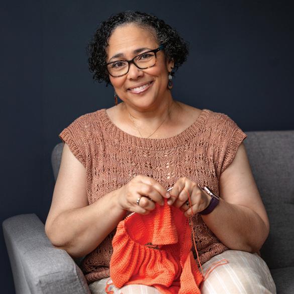 Her own journey began with a stranger’s kindness. Whitfield was traveling home from school on a very crowded bus in Philadelphia and sitting next to a woman who was knitting. “I was fascinated. I had always been fascinated by knitting,” she says. “She took some spare needles and some scrap yarn out of her bag and she showed me how to knit on the bus. I call her my yarn angel because she appeared that one day. I never saw her again.”