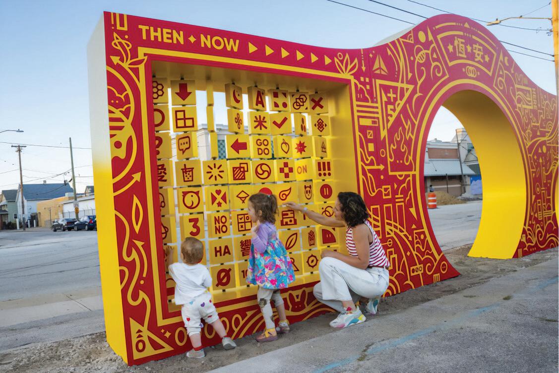 One TAF project is “For Those Who Call Here Home: Transforming Asiatown with an Outdoor Community Space.” It improved a popup park at E. 33rd and Payne Ave. on the site of the closed Dave’s Supermarket parking lot, created in 2021 by Midtown Cleveland. Jordan Wong, lead artist for the project, says the TAF filled a void in the neighborhood. “There were really no parks or public gathering spaces here in Midtown,” he said. “Chinese square dancers in the community started using this as a practice space several years ago, and it caught on as a potential community space. Now, there have been grassroots or DIY efforts to turn this into a space where people could gather and really use it.”