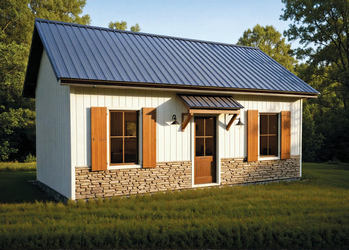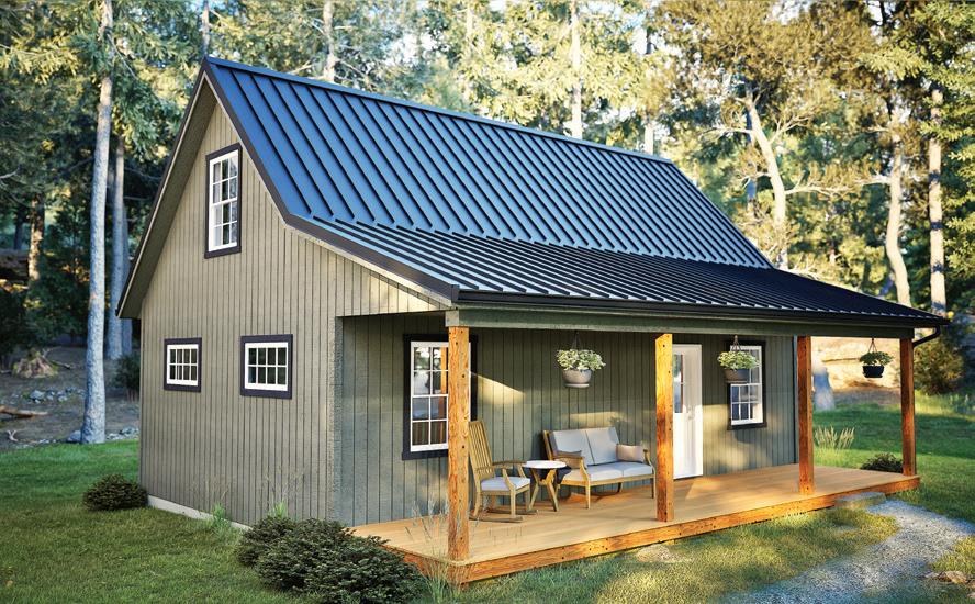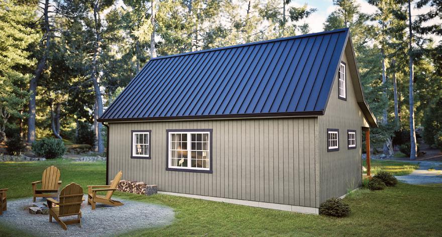 The Fairview features a spacious front porch and an open floor plan that includes a lofted area with vaulted ceilings. It is designed for DIY interior finishing, allowing you the flexibility to create a cozy cabin with 2-inch by 6-inch studded walls in the woods or to expand your storage area in the backyard. This model gives you the freedom to let your imagination run wild. The welcoming front porch provides additional space for enjoying evenings and making memories. Thoughtfully designed, the Fairview measures 27 feet by 32 feet, with 8-foot side walls, offering 864 square feet of space. Exterior finishes include SmartSide siding, steel roofing, double-hung vinyl windows and fiberglass doors. Envision the interiors and finish according to your dreams.