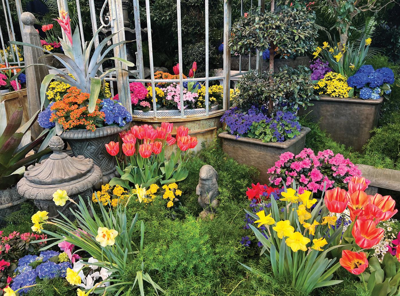 STEP UNDER A CANOPY OF COLOR AT UMBRELLA ALLEY, where hundreds of suspended umbrellas and spring-inspired vignettes turn an ordinary walkway into a vibrant, photo-worthy escape. This cheerful feature isn’t just a place to pass through; it’s a destination designed to spark joy, creativity and a little bit of wonder for visitors of all ages as you enjoy 10 vignettes before heading into the Garden Showcase.